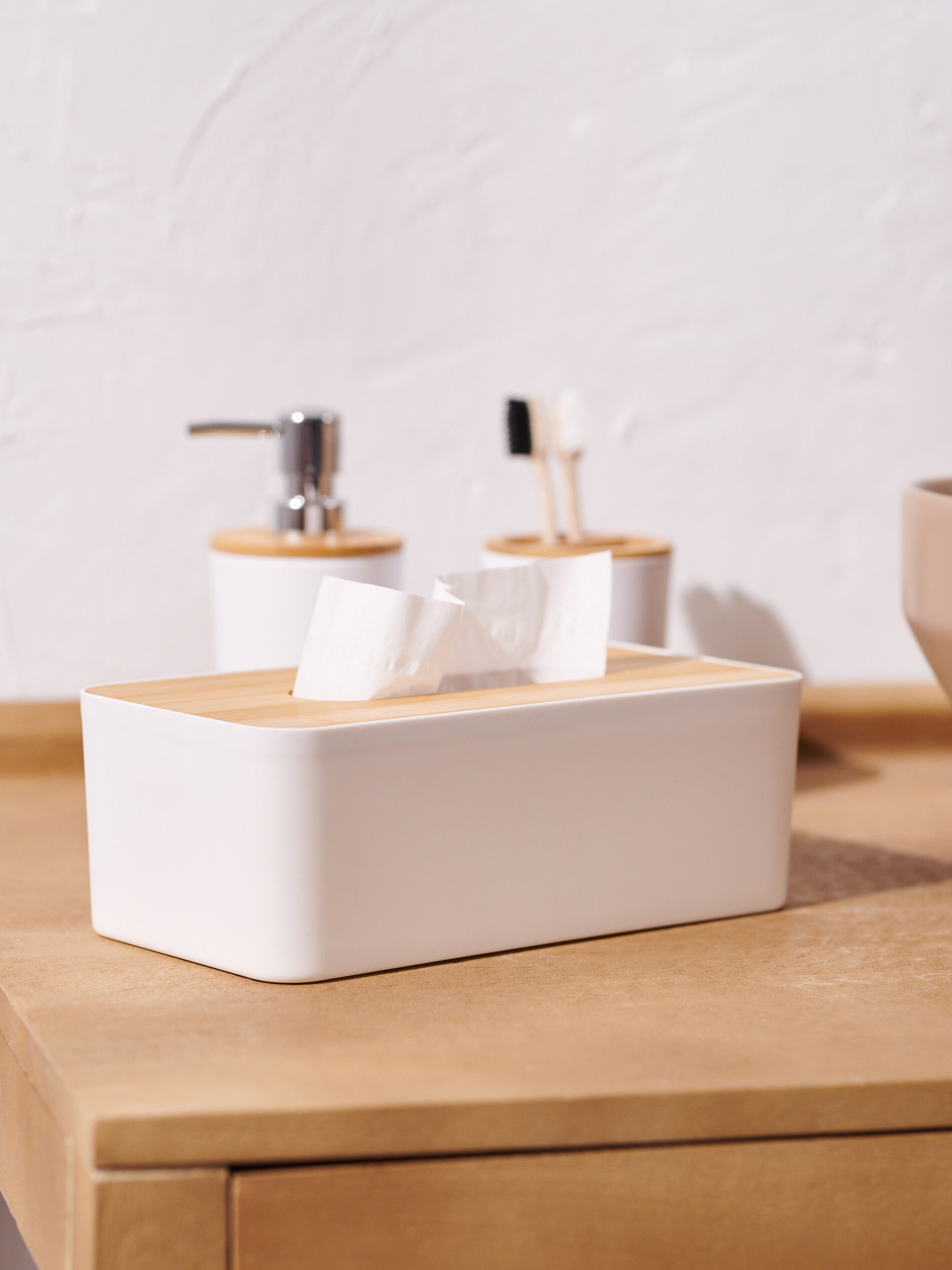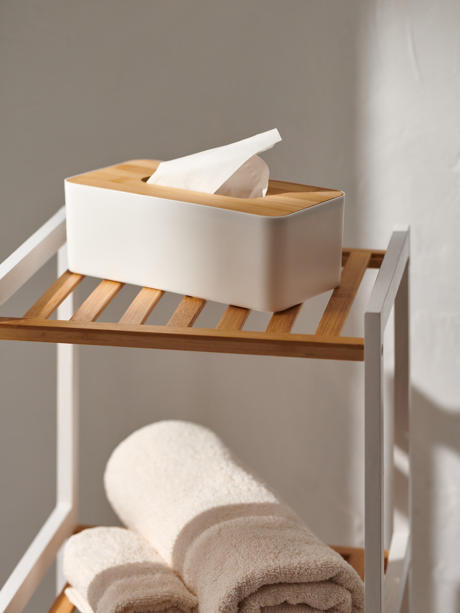 Capacul pentru cutie de șervețele Sinsay, în nuanță albă, adaugă un accent elegant oricărui spațiu. Realizat din elemente din lemn, acest capac beneficiază de un finisaj mat, care îi conferă un aspect sofisticat și modern. Dotat cu o încuietoare practică, acesta asigură protecția șervețelelor și le păstrează la îndemână, fiind ideal pentru utilizarea zilnică. Designul său minimalist se integrează perfect în orice decor, transformând un obiect util în unul estetic. Alege Sinsay pentru un plus de stil în baia ta!