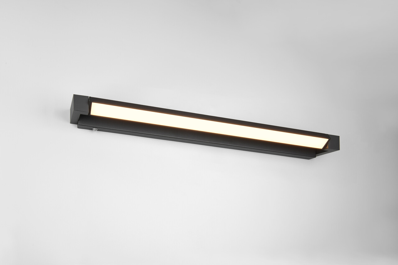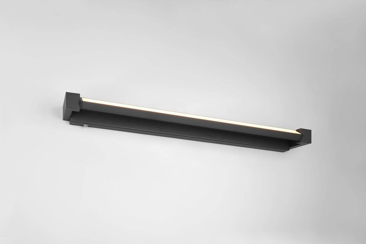 Aplica de perete Fabrizio TRIO 80x6 cm 15.5W 1x SMD, cu un finisaj din aluminiu negru mat, este soluția ideală pentru iluminarea băii, având un grad de protecție IP44. Designul său alungit și pivotant o face perfectă pentru amplasarea lângă sau deasupra oglinzii, creând accente elegante. Culoarea luminii este reglată ușor printr-un comutator integrat, iar variatorul de intensitate cu senzor și funcția de memorie oferă confort suplimentar. Tehnologia LED modernă asigură o durată lungă de viață și eficiență energetică, fiind o alegere inspirată pentru orice spațiu.