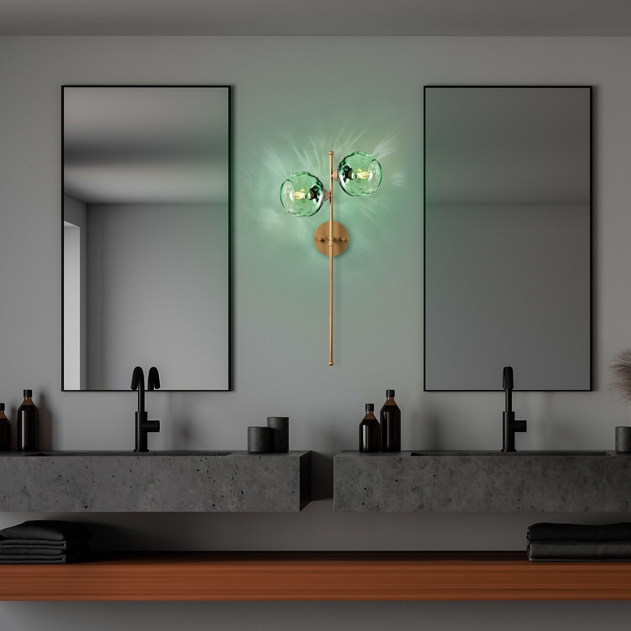 Aplica de pereteAbajur din sticlaMarime: 35 x 25 x 72 cmDiametru capac: 15 cmDimensiuni baza: Ø10 h:2 cmTip soclu: 2 x E 27 Max 40 WBecul nu este inclus220-240 VGrad de protectie: IP20