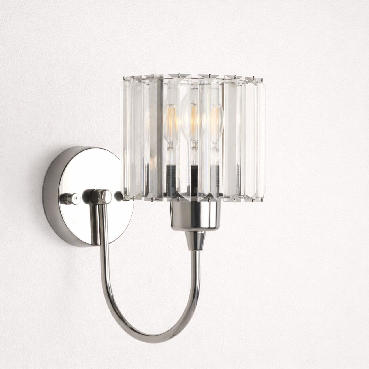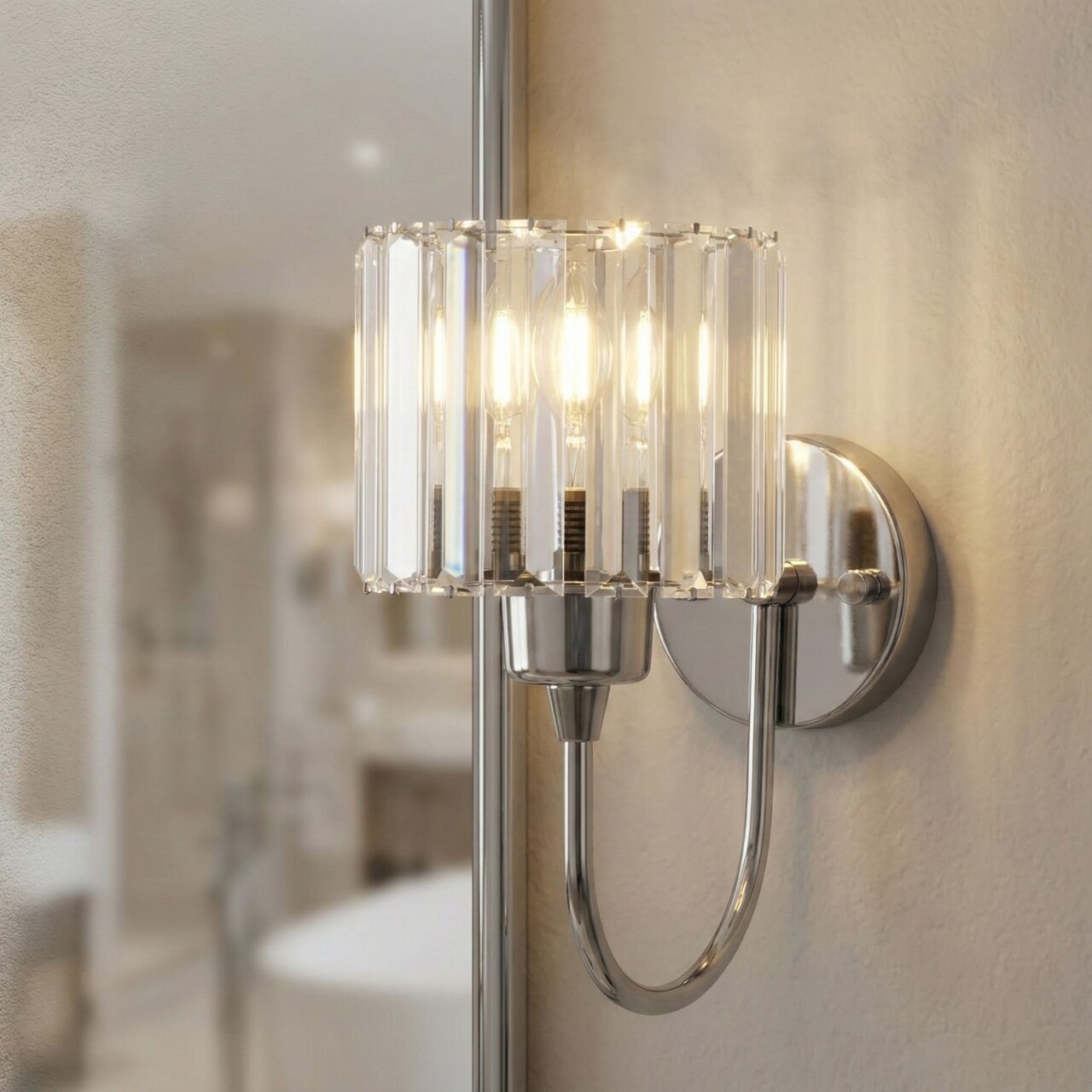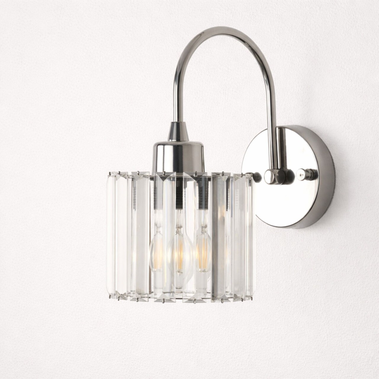 Aplica de pereteAbajur din sticlaDimensiunea capacului: Ø13 h:12 cmDimensiuni baza: Ø10 h:3 cmTip soclu: 1 x E 14 Max 40 WBecul nu este inclus220-240 VGrad de protectie: IP20