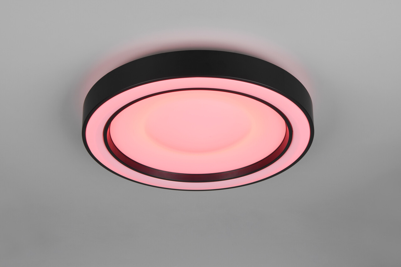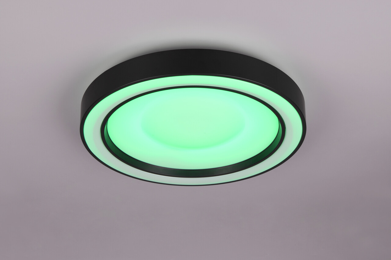 Plafoniera Arco RL 40x7.5 cm 22W 1x SMD, cu un finisaj elegant din plastic negru mat, aduce un accent modern oricărei încăperi. Cu un schimbător de culori RGBW integrat, aceasta oferă o gamă variată de nuanțe strălucitoare, toate reglabile comod prin telecomandă. Funcția de memorie salvează ultimele setări, asigurându-se că lumina se aprinde exact așa cum îți dorești. Tehnologia LED modernă garantează o calitate superioară a luminii, cu o durată de viață de 25.000 de ore și un flux luminos de 2500 lumeni. Ideală pentru a crea atmosfera perfectă în sufragerie.