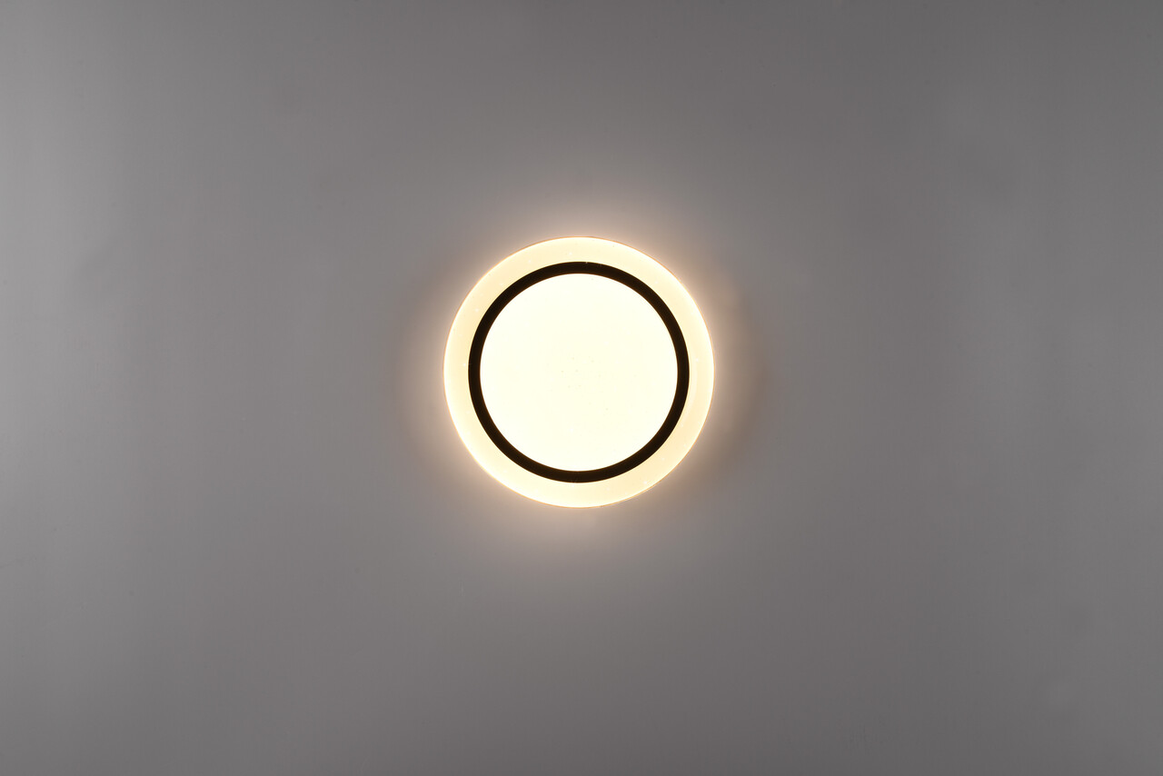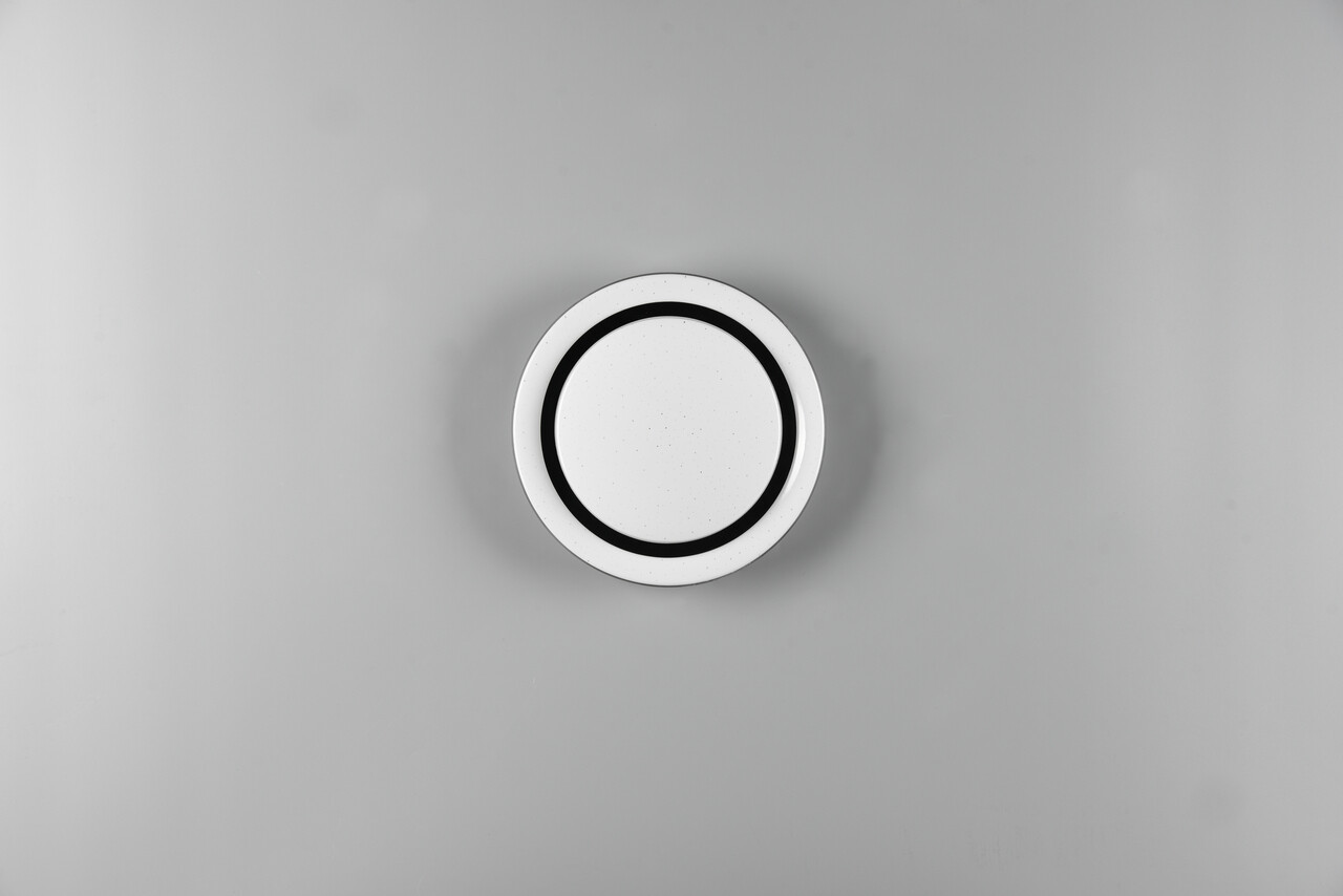 Plafoniera Atria RL, cu dimensiuni de 27x7 cm și o putere de 10.5W, aduce un design simplu și elegant în orice spațiu. Corpul de iluminat cu carcasa Starlight oferă o gamă variată de opțiuni de iluminare controlate comod prin telecomandă, incluzând o lumină de noapte și o funcție de memorie. Culoarea alb mat cu accente negre permite integrarea ușoară în diferite concepte de mobilier. Tehnologia LED asigură o durată de viață de 25.000 de ore și un flux luminos de 1080 lumeni, generând o lumină de calitate, cu un indice CRI de 80 și o temperatură de culoare ajustabilă între 3000K și 6000K.