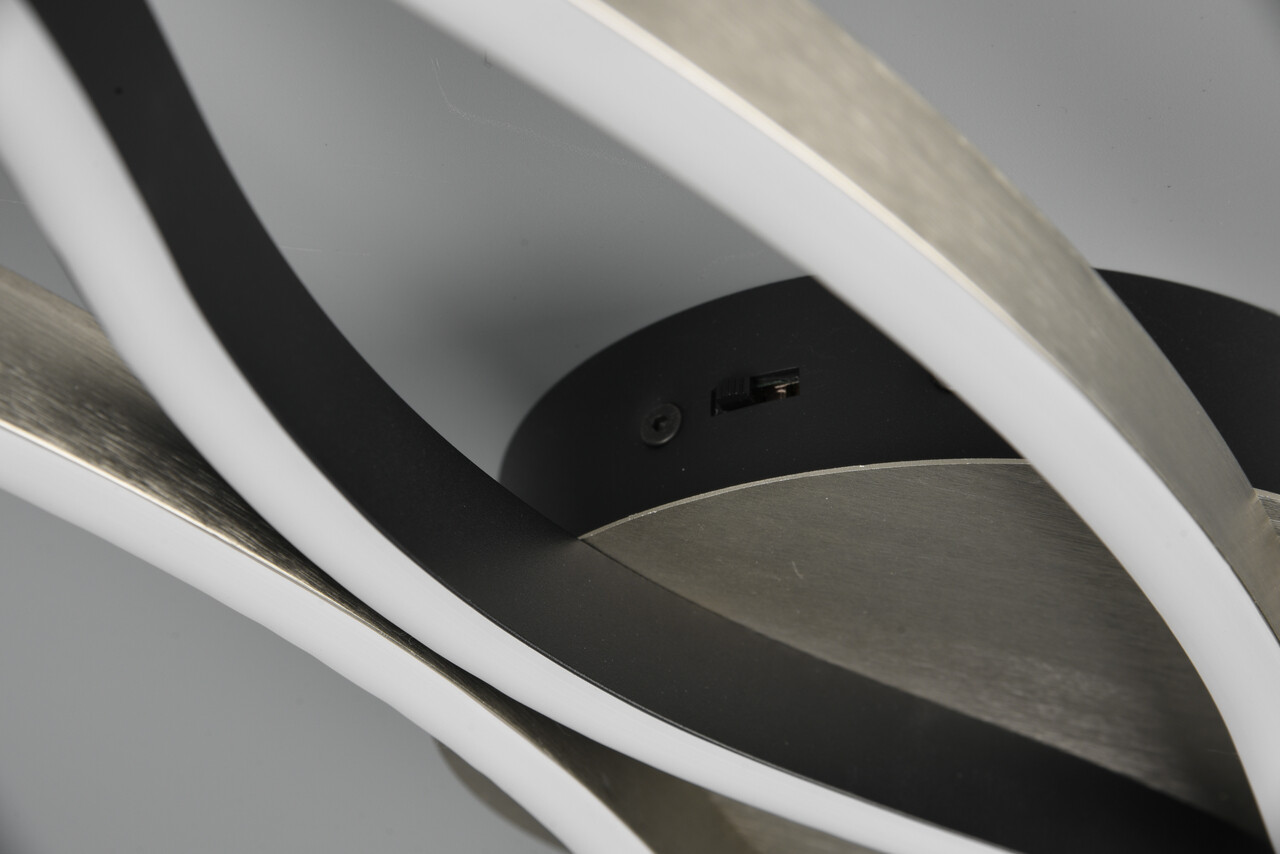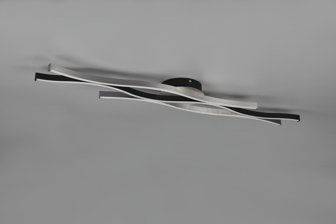 Plafoniera Blaze de la TRIO, cu dimensiunile de 107.5x18x7 cm, îmbină eleganța și funcționalitatea într-un design modern. Forma sa curbată aduce un plus de stil în orice spațiu, fiind ideală pentru zona de dining sau living. Dotată cu un SWITCH dimmer, permite ajustarea luminozității de la 100% la 25%, iar comutatorul pentru reglarea culorii luminii (alb cald, alb neutru, alb de zi) oferă versatilitate. Cu o putere de 35W și flux luminos de 4300 lumeni, tehnologia LED asigură o durată de viață de 30.000 de ore și o eficiență energetică superioară. Designul metalic argintiu/negru completează perfect orice decor.