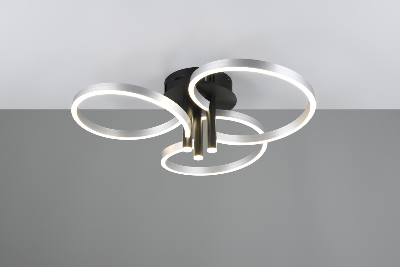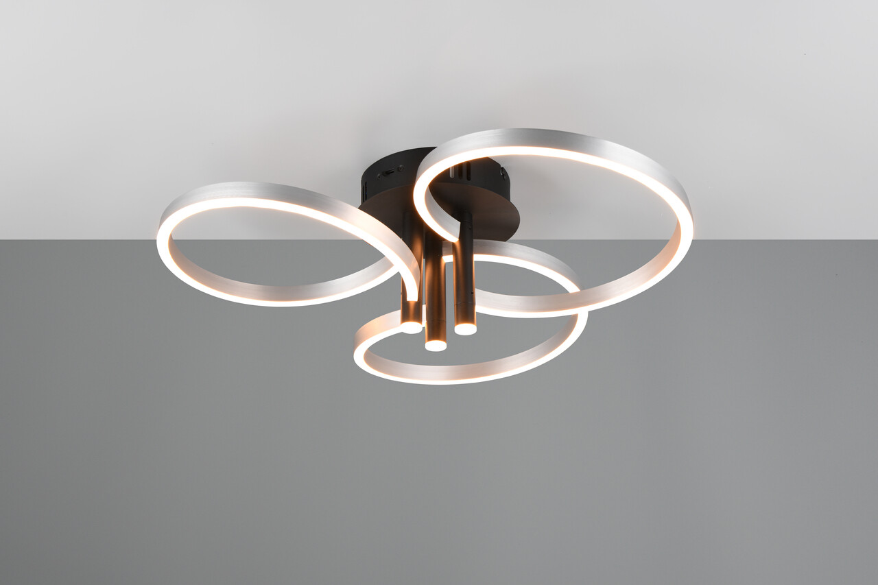 Plafoniera Caruso de la TRIO se remarcă prin designul său unic, format din trei inele elegante ce creează un aspect dinamic și armonios. Aceasta nu doar că aduce un stil modern, cu accente negre mate și argintii lucioase, dar oferă și funcționalitate avansată. Luminozitatea și temperatura culorii pot fi ajustate cu ușurință printr-un întrerupător convențional, permițându-vă să adaptați iluminatul la nevoile și atmosfera dorită. Cu tehnologie LED de înaltă calitate, plafoniera asigură o durată lungă de viață și o eficiență energetică ridicată, oferind 4980 lumeni de lumină plăcută.