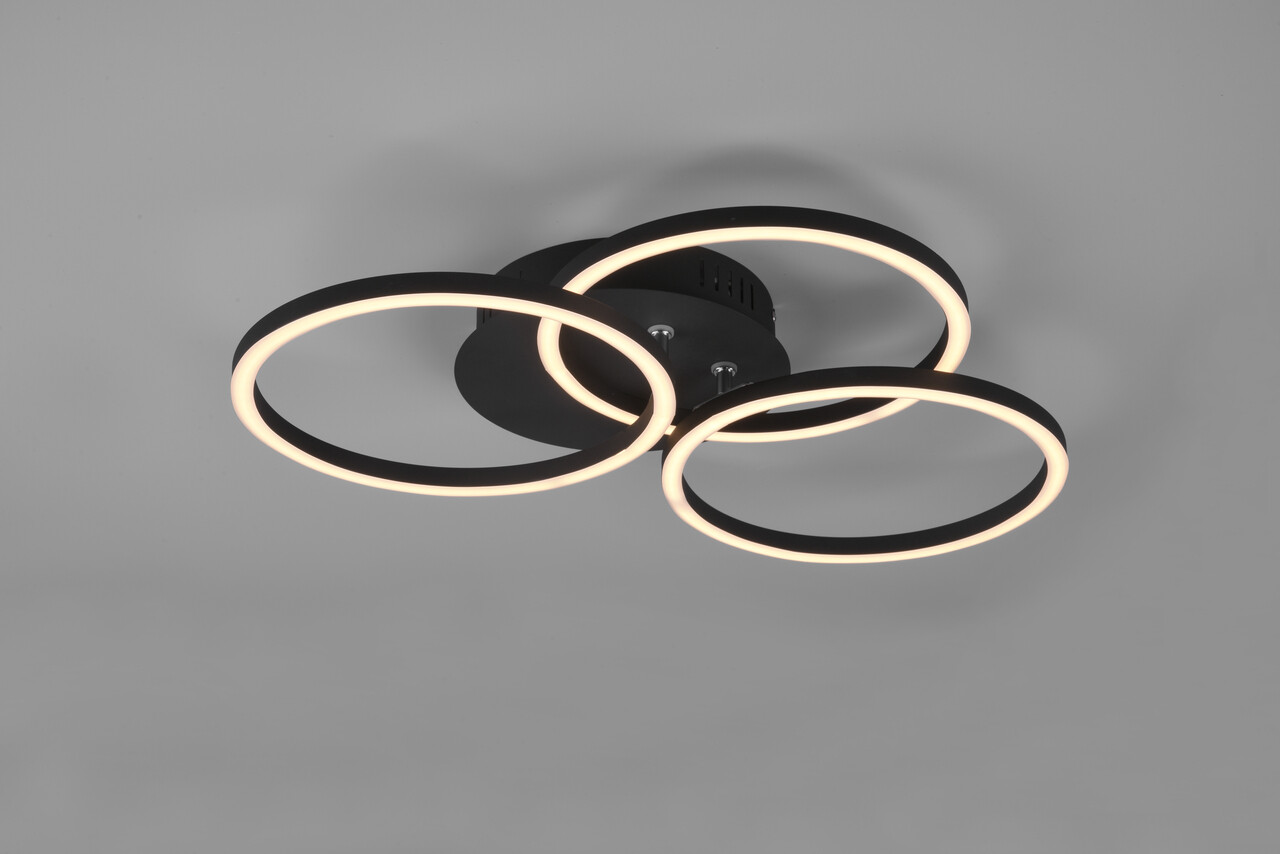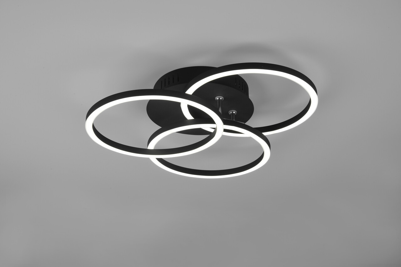 Plafoniera Circle RL 43.5x9.5 cm 27W 1x SMD în nuanță de negru mat oferă o iluminare modernă și elegantă, cu un design geometric captivant. Modulele pivotante permit aranjamente creative, iar telecomanda inclusă facilitează reglarea luminozității și a temperaturii culorii, de la alb rece la alb cald. Tehnologia LED asigură o durată de viață de 30.000 de ore și un flux luminos de 3200 lumeni, având un indice de redare a culorii (CRI) de 80. Această plafonieră se integrează perfect în diverse stiluri de mobilier, combinând estetică și eficiență.