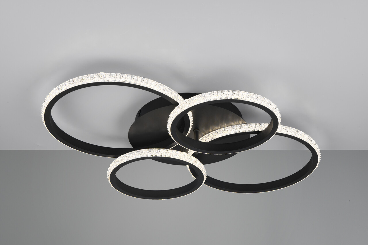 Plafoniera Cires RL 65.5x49.5x8.5 cm 27W 1x SMD metal negru mat aduce un plus de eleganță în orice încăpere. Cu forme geometrice moderne și module pivotante, acest corp de iluminat oferă posibilități nelimitate de design și aranjamente creative. Variatorul SWITCH integrat permite reglarea luminozității în trei trepte (100%, 50%, 25%) printr-un întrerupător obișnuit, creând astfel diverse atmosfere. Cu o temperatură a culorii de 4000K și un flux luminos de 3400 lumeni, Plafoniera Cires utilizează tehnologia LED modernă, asigurând o durată de viață de 25.000 ore și eficiență energetică ridicată. Designul elegant cu efecte de cristal transparent completează aspectul rafinat al casei tale.