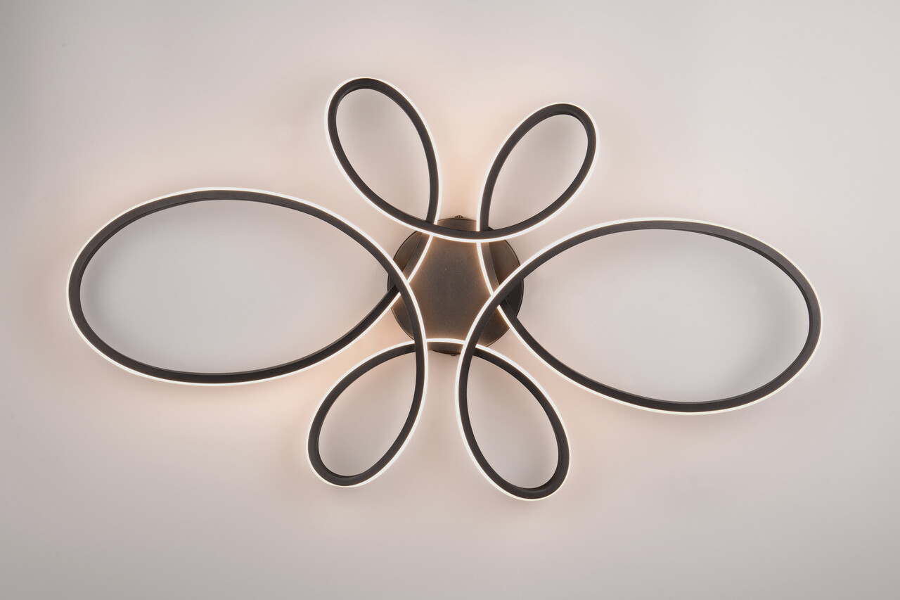 Plafoniera Fly de la TRIO, cu dimensiuni de 83x45.5x7.5 cm, îmbină perfect funcționalitatea cu designul modern. Cu puterea de 32W și tehnologia LED avansată, aceasta oferă o lumină de calitate durabilă și redusă ca generație de căldură. Variatorul SWITCH integrat permite ajustarea luminozității pe trei niveluri (100%, 50%, 25%), creând o atmosferă plăcută în orice cameră. Designul său curbat, combinat cu finisajul negru mat, conferă un aspect elegant și sofisticat, transformând fiecare încăpere într-un spațiu artistic iluminat. Indicele de redare a culorii (CRI) de 80 asigură o experiență vizuală plăcută.