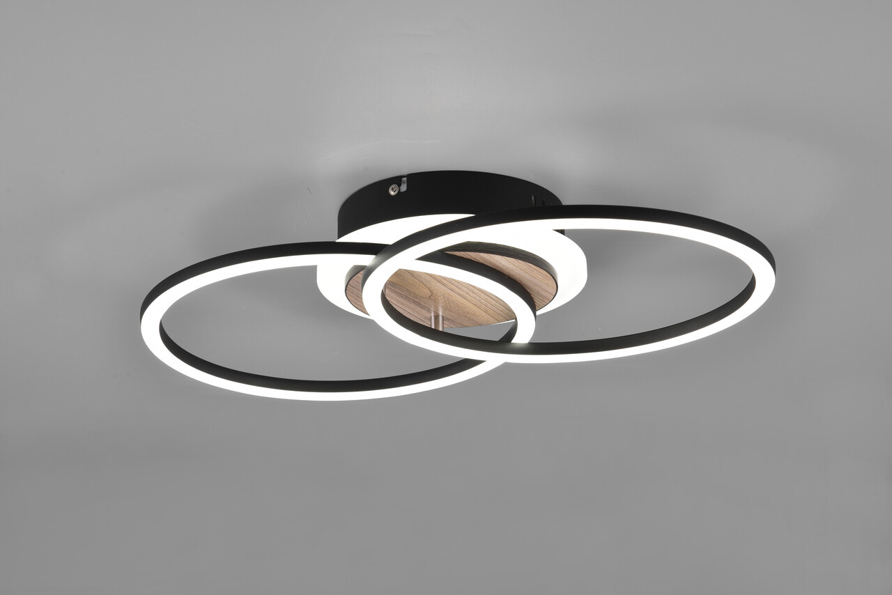 Plafoniera Giro impresionează prin designul său rotund, minimalist, ce se integrează perfect în orice stil modern de mobilier. Culoarea luminii și intensitatea pot fi ajustate convenabil prin intermediul unei telecomenzi sau prin variatorul SWITCH, cu trei trepte de luminozitate (100%, 50%, 25%). Funcția de lumină de noapte și opțiunea de memorie reîntorc ultima setare la aprindere. Cu un finisaj mat în negru și o estetică din lemn, acest corp de iluminat aduce un plus de eleganță oricărei încăperi. Tehnologia LED oferă o durată de viață de 25.000 de ore și un flux luminos de 3000 lumeni, asigurând o iluminare de calitate superioară.