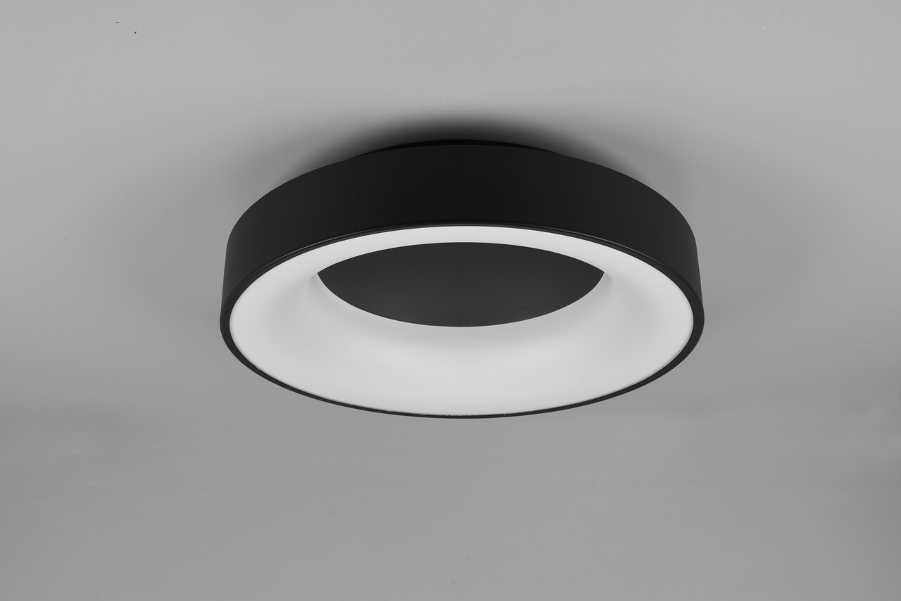 Plafoniera Girona de la TRIO, cu dimensiuni de 45x11 cm și putere de 27W, aduce un aer minimalist și elegant oricărui interior. Designul său simplu, cu formă rotundă și finisaj negru mat, se integrează perfect în conceptele de mobilier moderne. Datorită variatorului SWITCH integrat, luminozitatea poate fi reglată ușor de la 100% la 50% sau 25%, asigurând condiții optime de iluminare. Tehnologia LED folosită garantează o durată de viață de 30.000 de ore și un flux luminos impresionant de 3100 lumeni, oferind o calitate înaltă a luminii cu un indice de redare a culorii de 80.