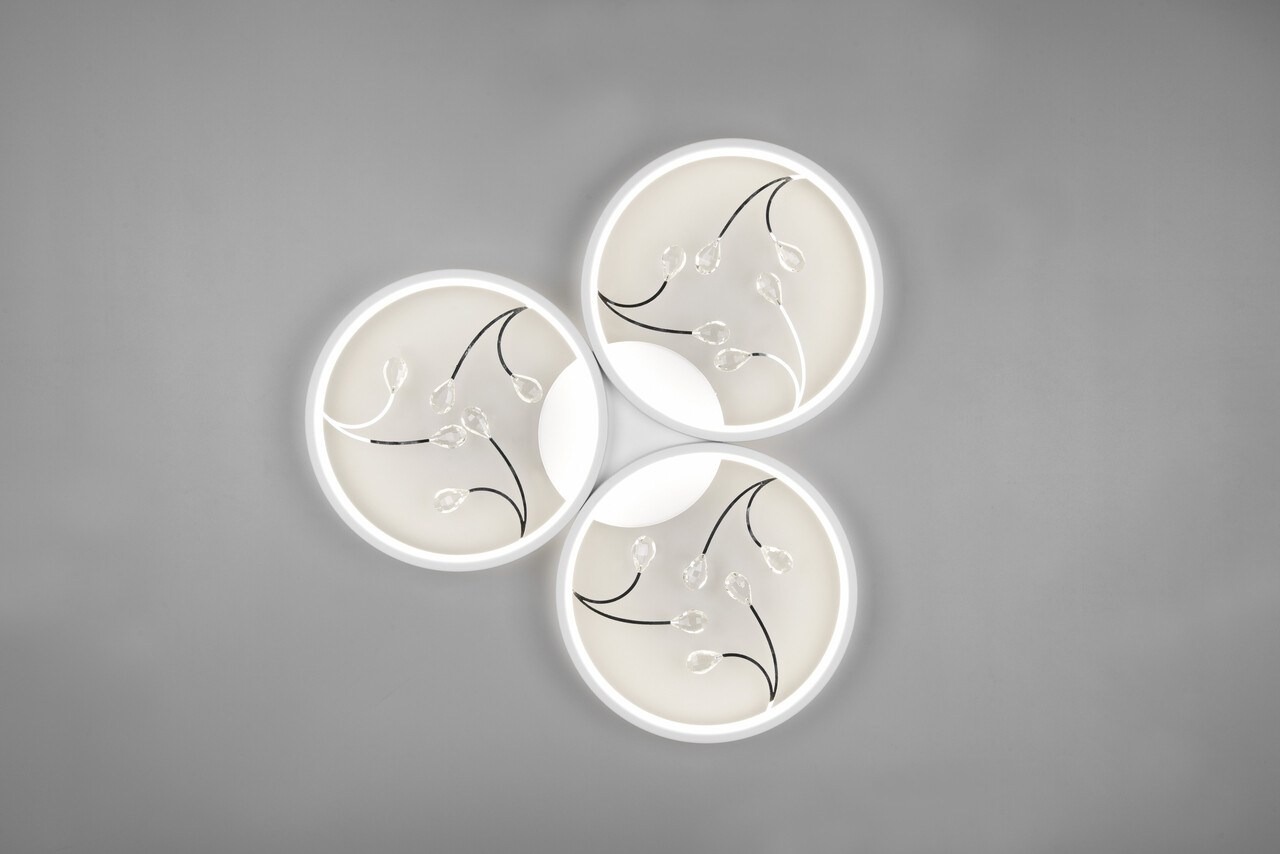 Plafoniera Groovy TRIO 62x6 cm 30W cu 1x SMD metal alb mat aduce un strop de eleganță în livingul tău, datorită celor trei cercuri luminoase ce creează o atmosferă specială. Elementele din sticlă din interiorul cercurilor oferă o notă decorativă deosebită. Cu un variator SWITCH integrat, poți ajusta luminozitatea LED-urilor în trei trepte, adaptând lumina nevoilor tale. Designul său simplu se integrează perfect în diverse stiluri de interior, iar tehnologia LED asigură o calitate înaltă a luminii, o durată lungă de viață de 30.000 h și o generare redusă de căldură.