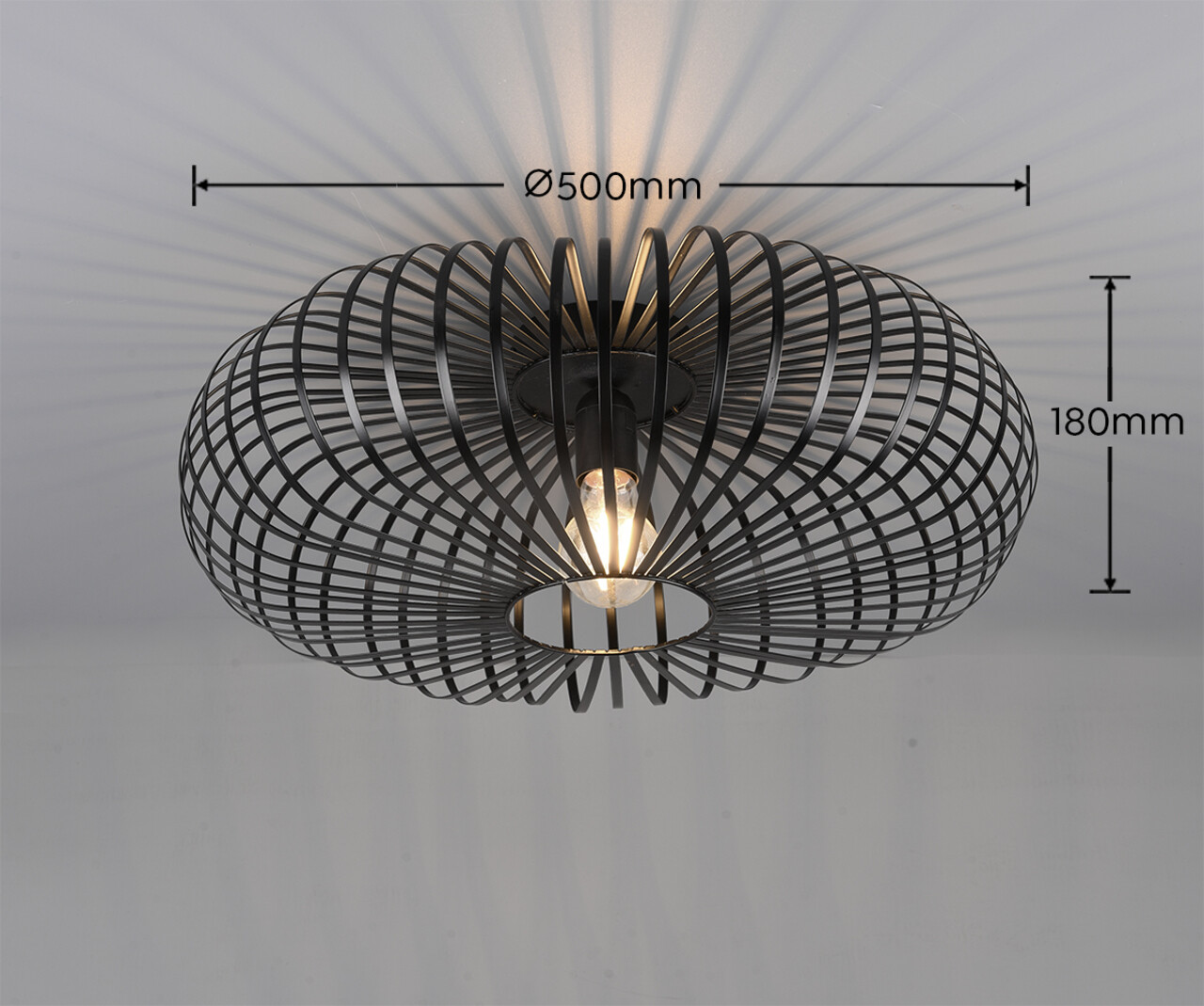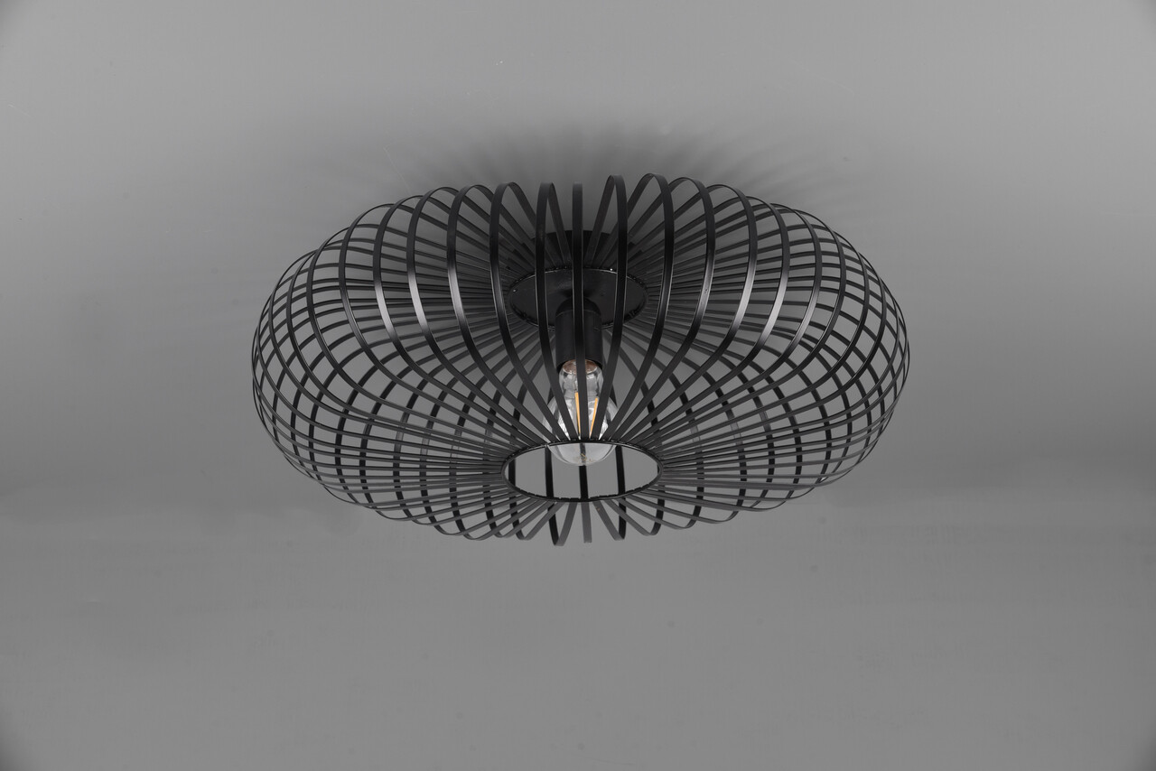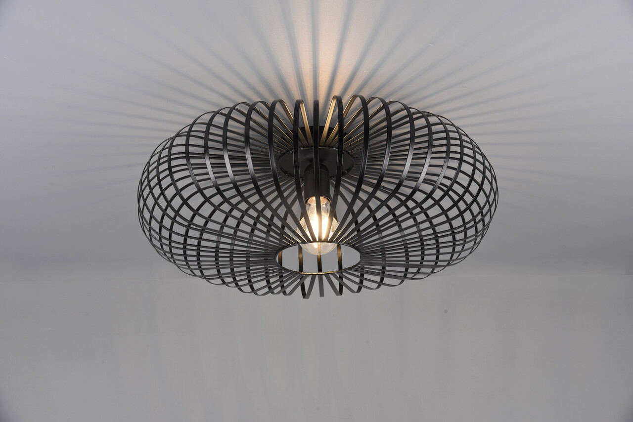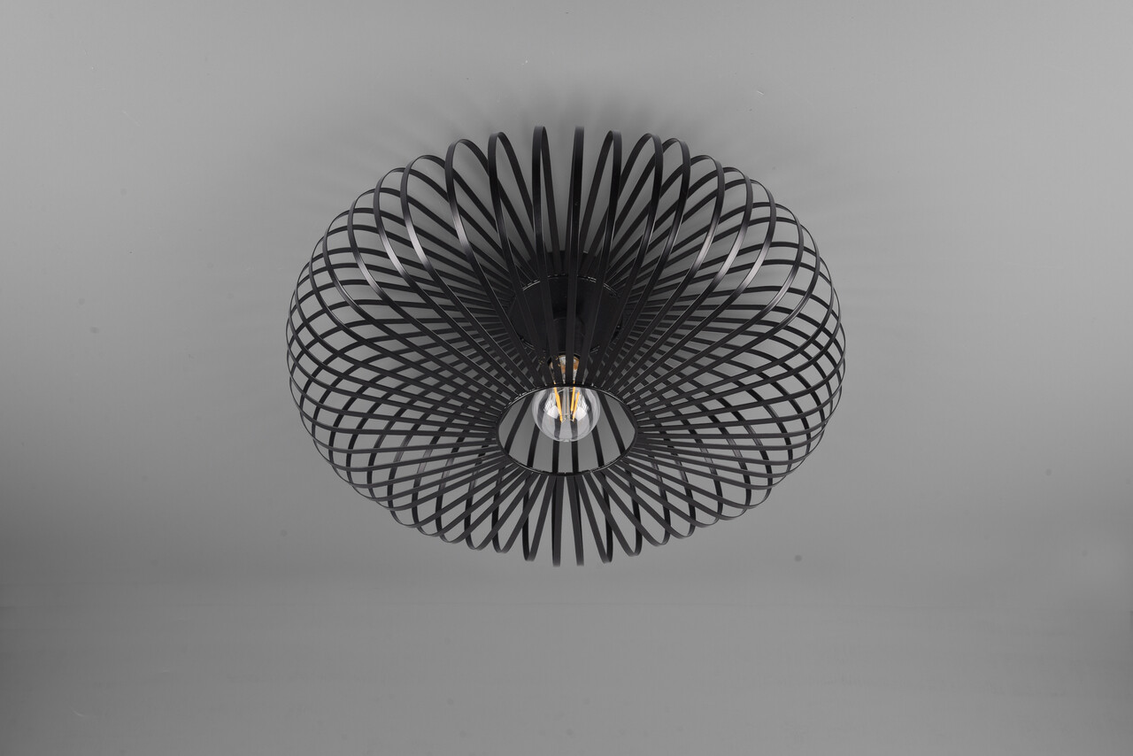 Plafoniera Johann TRIO 50x18 cm 60W 1x E27 metal negru mat aduce un strop de eleganță în orice încăpere. Arcadele metalice filigranate formează un abajur sofisticat, care difuzează o lumină caldă și creează un joc de umbre fascinant pe tavan. Designul său în negru mat oferă un contrast modern, ideal pentru interioarele contemporane. Este recomandată utilizarea unui bec LED pentru o iluminare eficientă și de lungă durată, ce asigură o calitate superioară a luminii. Perfecțiunea estetică și funcționalitatea o fac alegerea ideală pentru un ambient confortabil.