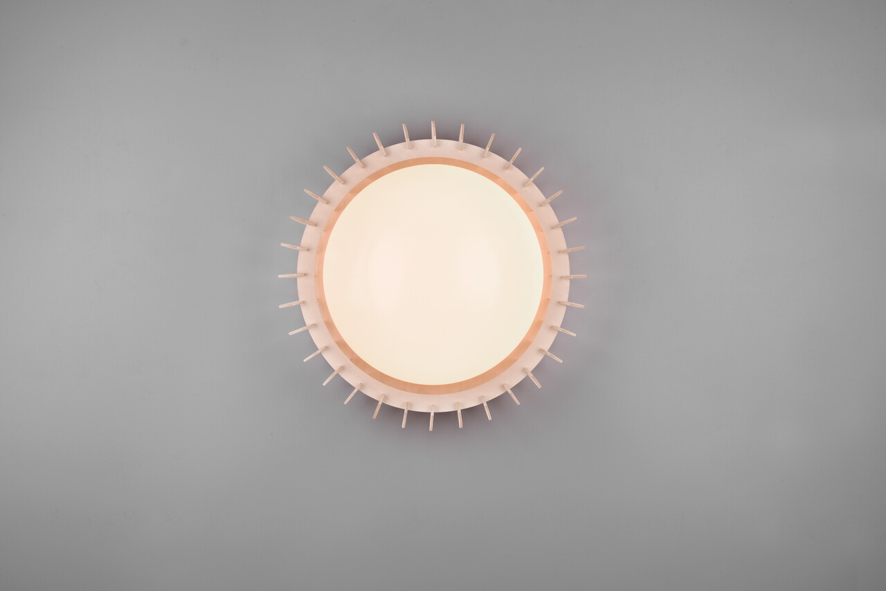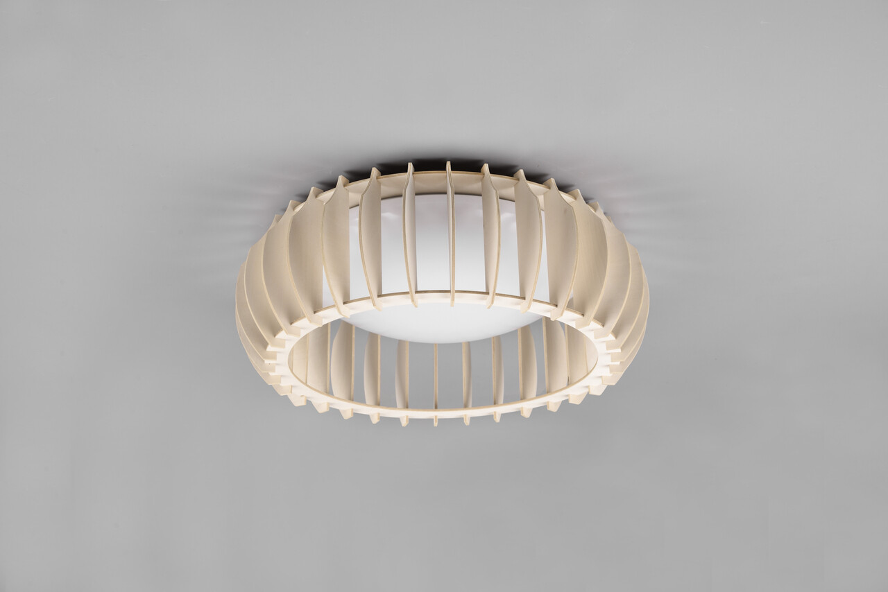 Plafoniera Monte RL 40x14 cm 16.5W 1x SMD, cu un design elegant din lemn și plastic alb/natur, este alegerea ideală pentru un spațiu de locuit modern. Elementele abajurului sunt dispuse eficient, oferind o iluminare uniformă și plăcută. Variatorul SWITCH încorporat permite ajustarea luminozității la trei niveluri, controlabile prin întrerupătoare convenționale. Cu o temperatură a culorii de 3000K și un flux luminos de 2200 lumeni, această plafonieră creează o atmosferă caldă și primitoare. Durata de viață a surselor de lumină LED este de 25.000 de ore, asigurând eficiență și confort.