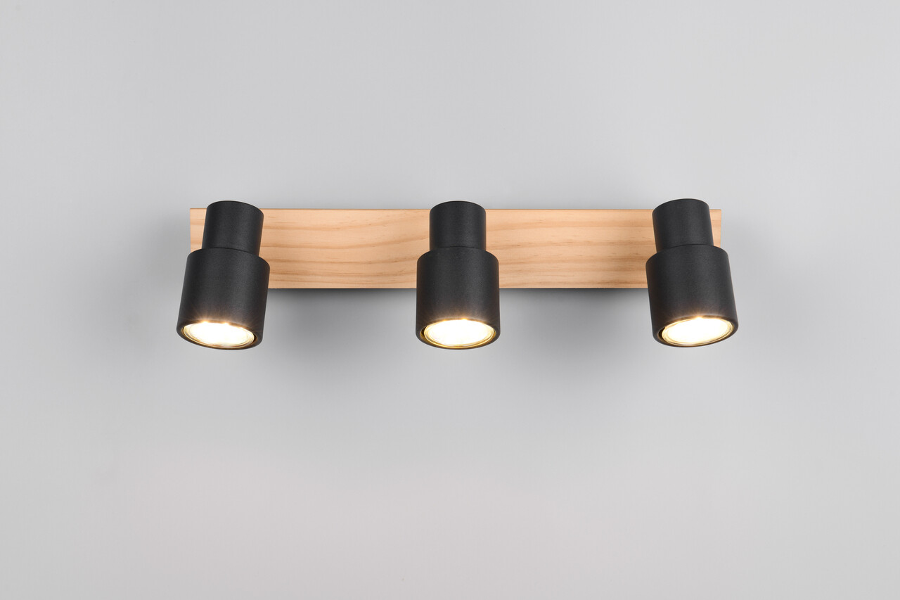 Plafoniera Pierre RL 40x6x15 cm 10W 3x GU10 metal negru mat/natur