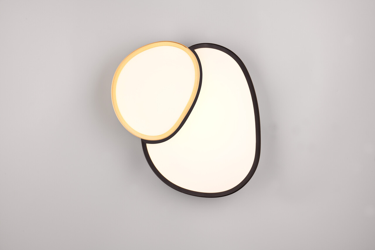Plafoniera RISE de la TRIO, cu dimensiuni de 40x37.7x8 cm și putere de 21W, aduce un aer elegant și modern oricărui spațiu. Designul său cu forme organice și combinația de negru și auriu creează accente decorative distinctive. Cele două suprafete iluminate oferă o atmosferă confortabilă, iar telecomanda inclusă permite ajustarea luminozității și a temperaturii culorii luminii (2700/6500K) din confortul canapelei. Cu o durată de viață de 30.000 de ore și o eficiență energetică de clasă F, plafoniera RISE este o alegere practică și rafinată pentru seri de film sau momente de relaxare.