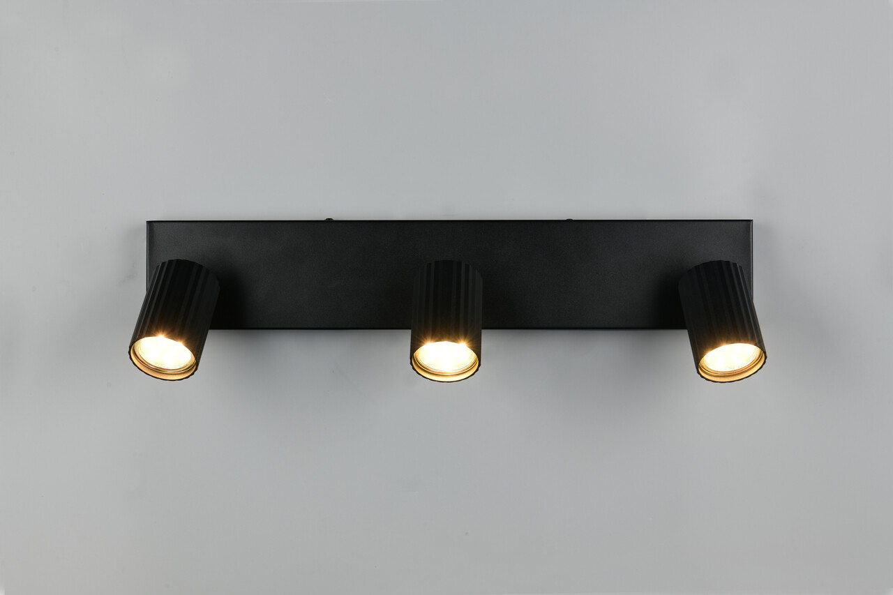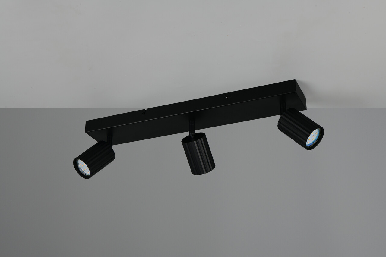 Plafoniera Soka TRIO 50x9x14.5 cm este o alegere elegantă pentru iluminatul interior, fiind ideală pentru montaj pe perete sau pe tavan. Cu un design modern, această plafonieră din metal negru mat se integrează perfect în orice decor. Este dotată cu 3 socluri GU10, având o putere totală de 10W, și oferă un grad de protecție IP20, fiind potrivită pentru utilizarea în interior. Becurile nu sunt incluse, oferindu-vă flexibilitatea de a alege sursele de lumină care se potrivesc cel mai bine stilului dumneavoastră.