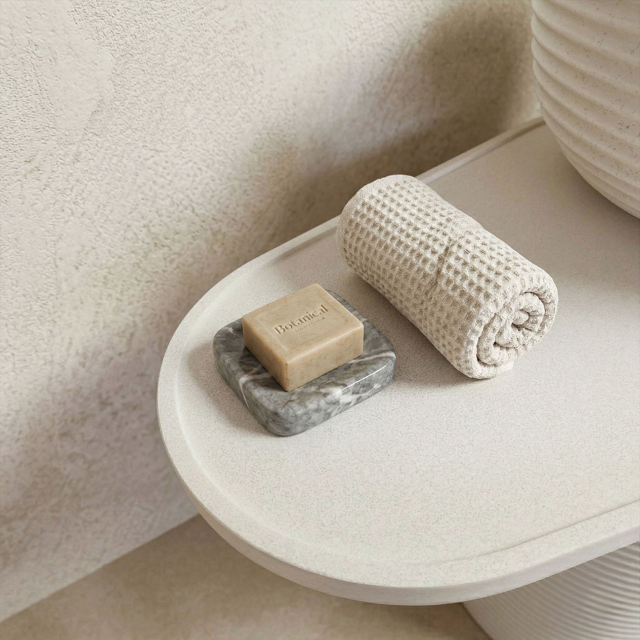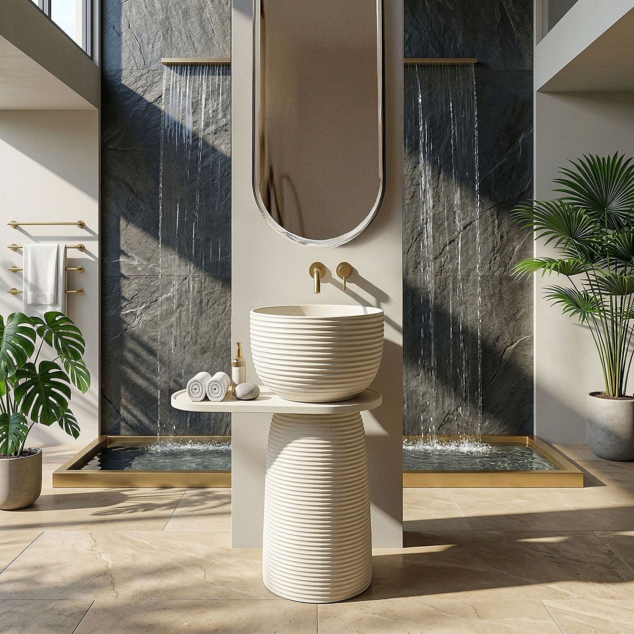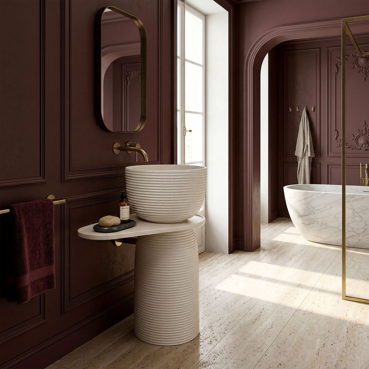 Cauți un element de amenajare care să devină punctul central al băii tale? Lavoarul de sine stătător Rea Azalia într-o nuanță deschisă este o adevărată capodoperă a designului contemporan, care îmbină forma sculpturală cu funcționalitatea fără compromisuri. Realizat din compozit Artificial Stone, impresionează prin suprafața satinată, fină, și prin modelul subtil, punctat, ce imită piatra naturală, oferind interiorului un caracter luxos și unic.Material Artificial Stone – utilizarea unui compozit de înaltă calitate garantează durabilitate excepțională, rezistență la zgârieturi și o structură perfect netedă, plăcută la atingere, extrem de ușor de întreținut.Formă canelată unică – canelurile orizontale de pe corp și din jurul cuvei conferă volumului lejeritate și rafinament arhitectural, făcând ca lavoarul să arate ca o sculptură modernă, ideală pentru interioare în stil art deco, modern classic sau japandi.Poliță laterală integrată – blatul asimetric este o soluție extrem de practică, care permite așezarea comodă a accesoriilor de uz zilnic, a săpunului sau a cosmeticelor, eliminând necesitatea montării unor piese suplimentare de mobilier.Cuvă adâncă și confortabilă – adâncimea optimă a cuvei asigură confort maxim în timpul igienei zilnice, prevenind eficient stropirea apei dincolo de marginea ceramicii.Orificiu de revizie discret – amplasat în partea din spate a carcasei, acesta permite mascarea estetică a instalației sanitare, păstrând totodată accesul facil pentru service, ceea ce simplifică mult montajul și utilizarea.Cromatică de designer – nuanța delicată, caldă, cu efect de piatră punctată, reprezintă o alternativă excelentă la albul clasic, aducând confort vizual în baie și armonizându-se perfect cu baterii aurii sau negre, încastrate ori freestanding. Lavoarul de sine stătător Rea Azalia este o propunere destinată celor mai exigenți utilizatori, care doresc să introducă în locuința lor un suflu de eleganță metropolitană și arhitectură modernă. Construcția sa monolitică și detaliile atent finisate fac ca acest produs nu doar să faciliteze ritualurile zilnice, ci mai ales să definească stilul întregii încăperi. Alegând acest model al brandului REA, investești într-o calitate și o estetică atemporale, care nu se vor demoda mulți ani de acum înainte. Metodă de montaj: Independentă Material: Artificial Stone (piatră compozită) Culoare: Bej, Ecru, Imitație piatră Finisaj: Mat Lungime: 655 Latime : 395 Inalime: 860 Adâncime: 245 Formă: Asimetric