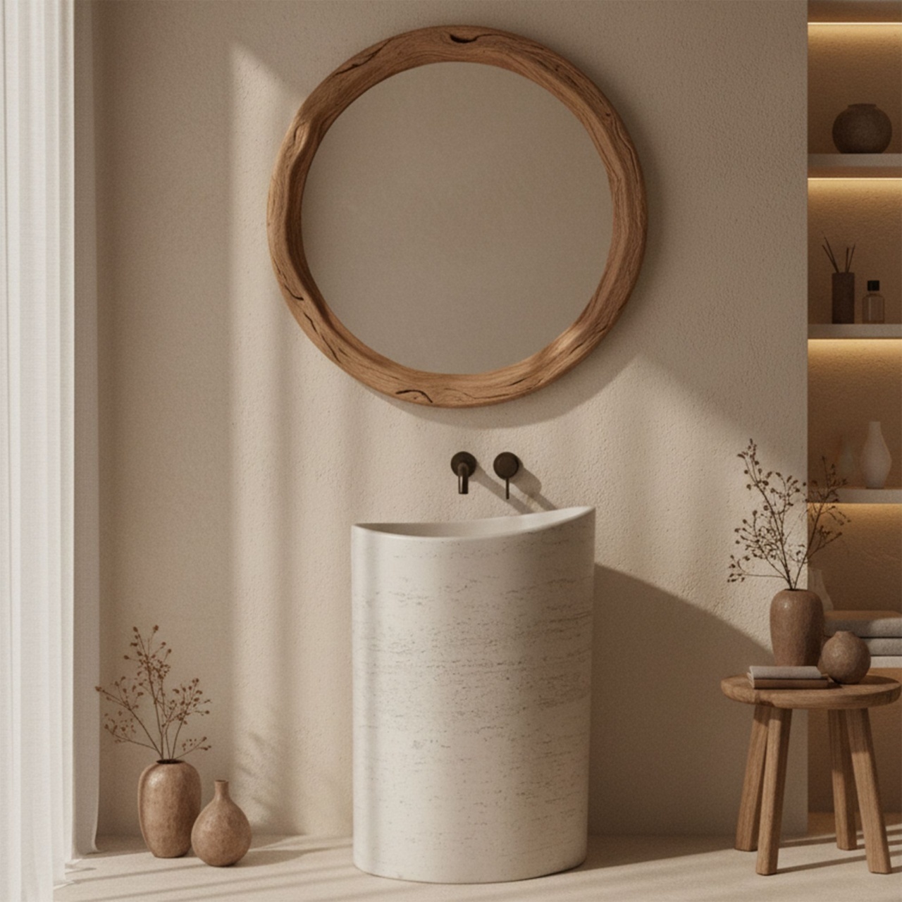 Descoperă frumusețea naturii brute într-o interpretare modernă cu lavoarul freestanding Rea Merlo. Acest model deosebit este un omagiu adus designului organic, în care forma pornește din inspirația naturii. Realizat din compozitul avansat Artificial Stone, lavoarul impresionează prin textura mată, poroasă, care amintește fidel de gresia naturală sau travertin.Material Artificial Stone – un conglomerat modern ce îmbină aspectul brut al pietrei cu proprietăți excelente de utilizare: este foarte durabil, rezistent la deteriorări și plăcut, cald la atingere.Textură unică – suprafața nu este netedă; are pori și striații fine, neregulate, care îi oferă un caracter autentic, artizanal, în spirit wabi-sabi.Formă monolitică – un bloc unitar montat direct pe pardoseală, cu o prezență impunătoare, devenind punctul decorativ principal al băii.Fără orificiu pentru baterie – linia curată a cuvei este gândită pentru baterii moderne de perete (încastrate) sau baterii înalte de podea.Formă organică – marginile ușor rotunjite și linia blândă a cuvei creează o atmosferă de calm și armonie.Lavoarul Rea Merlo este alegerea pentru cei care vor să transforme baia într-un sanctuar acasă. Estetica sa „de piatră” se potrivește perfect în amenajări boho, japandi și moderne, fiind fundalul ideal pentru ritualuri relaxante de îngrijire. Metodă de montaj: Independentă Material: Artificial Stone (piatră compozită) Culoare: Bej, Ecru Finisaj: Mat Lungime: 340 Latime : 550 Inalime: 855 Adâncime: 180 Formă: Oval, Asimetric