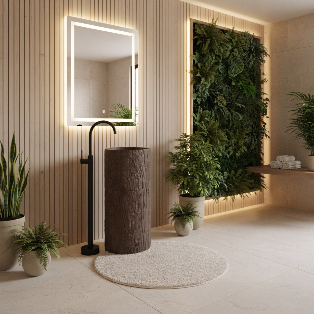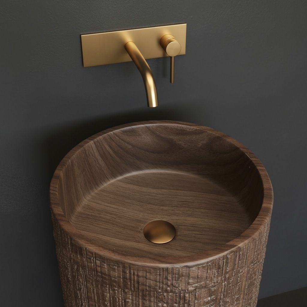 Alege lavoarul freestanding Rea, o combinație spectaculoasă între design brut și tehnologie modernă. Acest model monolitic, realizat din compozitul durabil Artificial Stone, se remarcă prin textura sa unică ce imită trunchiul natural al unui copac. Este o soluție care aduce în baie o atmosferă organică, păstrând în același timp rezistența și funcționalitatea completă a materialelor sintetice.Material Artificial Stone – piatră sintetică (compozit) de înaltă calitate, cu durabilitate excelentă, rezistență la lovituri și suprafață interioară perfect netedă.Imitație de lemn natural – structura exterioară reproduce fidel textura scoarței și fibra lemnului, oferind un aspect rustic, inconfundabil.Construcție freestanding – o formă monobloc montată direct pe pardoseală, care devine un punct central puternic în amenajarea băii.Orificiu de acces – pe partea din spate a coloanei există un orificiu funcțional ce permite montajul ușor al sifonului și accesul pentru service la instalația hidraulică.Rezistență la umiditate – spre deosebire de lemnul real, compozitul este complet rezistent la apă și umiditate, menținând un aspect impecabil ani la rând.Lavoarul freestanding Rea este alegerea ideală pentru iubitorii stilurilor eco, loft și spa – o „sculptură” funcțională, practică și de design pentru baia ta. Metodă de montaj: Independentă Material: Artificial Stone (piatră compozită) Culoare: Maro Finisaj: Mat Lungime: 395 Latime : 395 Inalime: 855 Adâncime: 135 Formă: Rotund