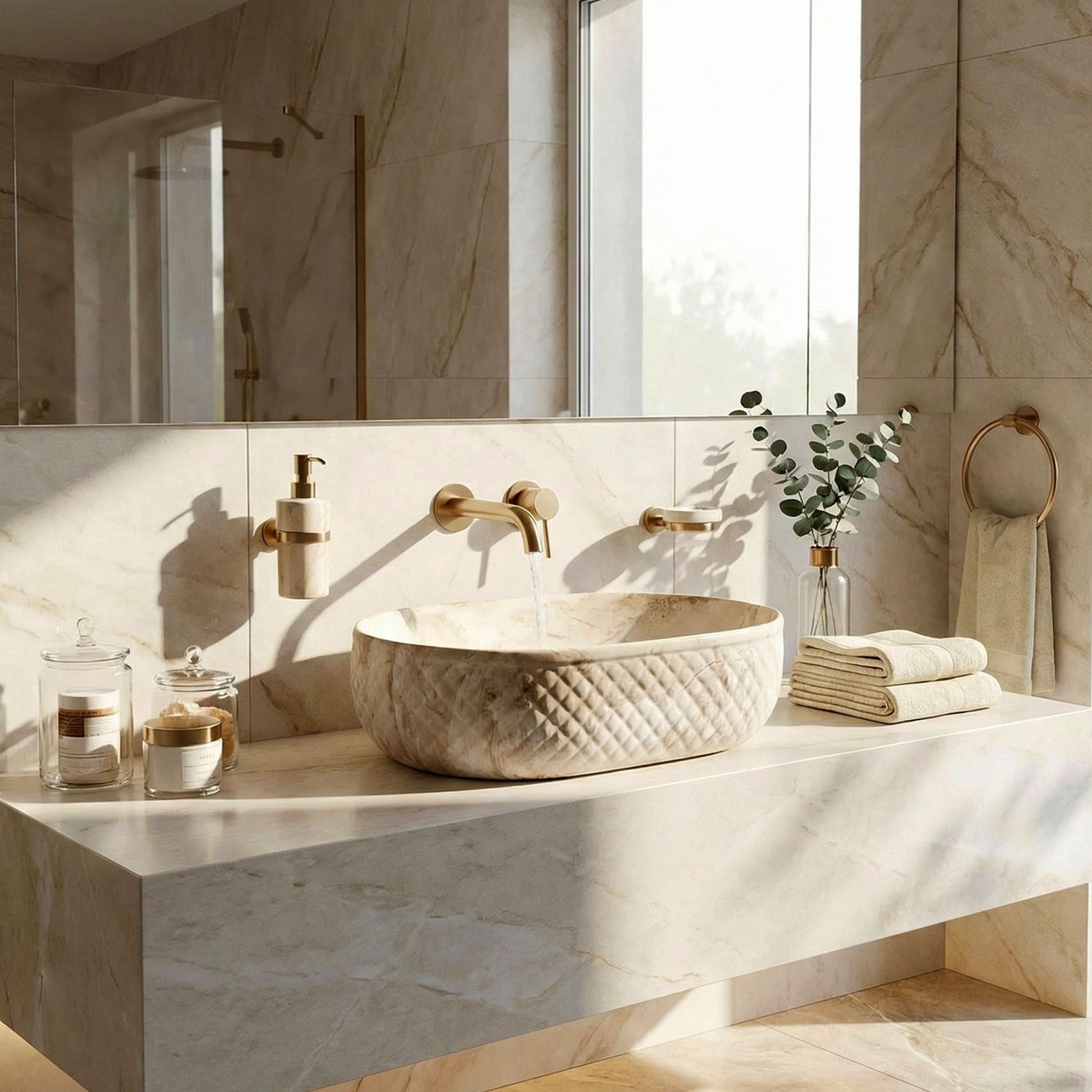 Alege un lavoar din piatră naturală - o alternativă originală pentru chivetele tradiționale albe ceramice. Modele potrivite oricărui stil, dimensiuni, pentru un plus de eleganță băii.