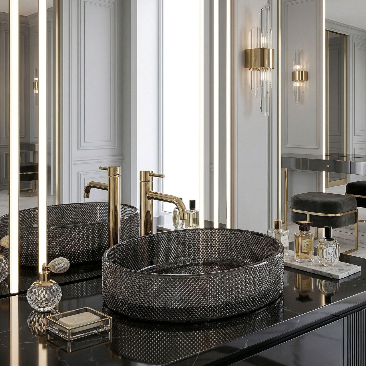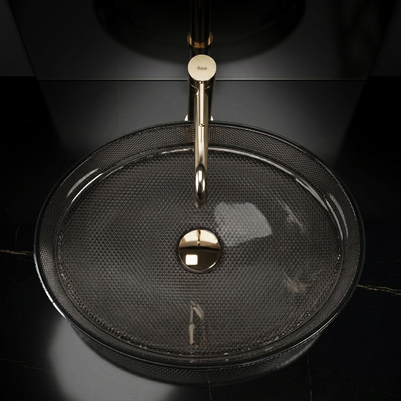 Cauți un element care să ofere băii tale o strălucire cu adevărat regală? Lavoarul pe blat Mirella, realizat din sticlă groasă decorativă, este alegerea ideală pentru persoanele care apreciază exclusivitatea și designul inspirat din bijuterii. Structura sa unică transformă produsul în punctul central al oricărei amenajări, încântând prin jocul de lumini și precizia execuției care schimbă aspectul oricărui interior.Material din sticlă – utilizarea sticlei garantează nu doar un efect vizual spectaculos, ci și o rezistență ridicată la zgârieturi și la utilizarea zilnică.Textură de bijuterie a suprafeței – relieful decorativ de pe partea exterioară a lavoarului amintește de pietre prețioase șlefuite, oferind întregului ansamblu un caracter luxos și rafinat.Reflexii luminoase spectaculoase – structura specială a materialului face ca lavoarul să strălucească frumos sub lumină, aducând dinamism și eleganță în baie.Perfect pentru diferite stiluri – forma ovală și ornamentația bogată fac ca acest model să se potrivească perfect în interioare glamour, art deco clasic sau spații moderne de tip luxury.Netezime igienică – finisajul neted al interiorului cuvei previne depunerea impurităților, permițând menținerea unei curățenii impecabile cu un minim de efort. Alegând lavoarul pe blat Mirella marca REA, ai garanția unui produs care îmbină funcționalitatea cu măiestria artistică. Construcția solidă și atenția acordată fiecărui detaliu fac ca această cuvă din sticlă să fie nu doar durabilă, ci mai ales să impresioneze în fiecare zi prin aspectul său. Este modul ideal de a introduce o notă de lux și o estetică aparte în zona lavoarului. Metodă de montaj: De blat Material: Sticla securizata Culoare: Negru Finisaj: Lucios Lungime: 495 Latime : 380 Inalime: 125 Adâncime: 95 Formă: Oval