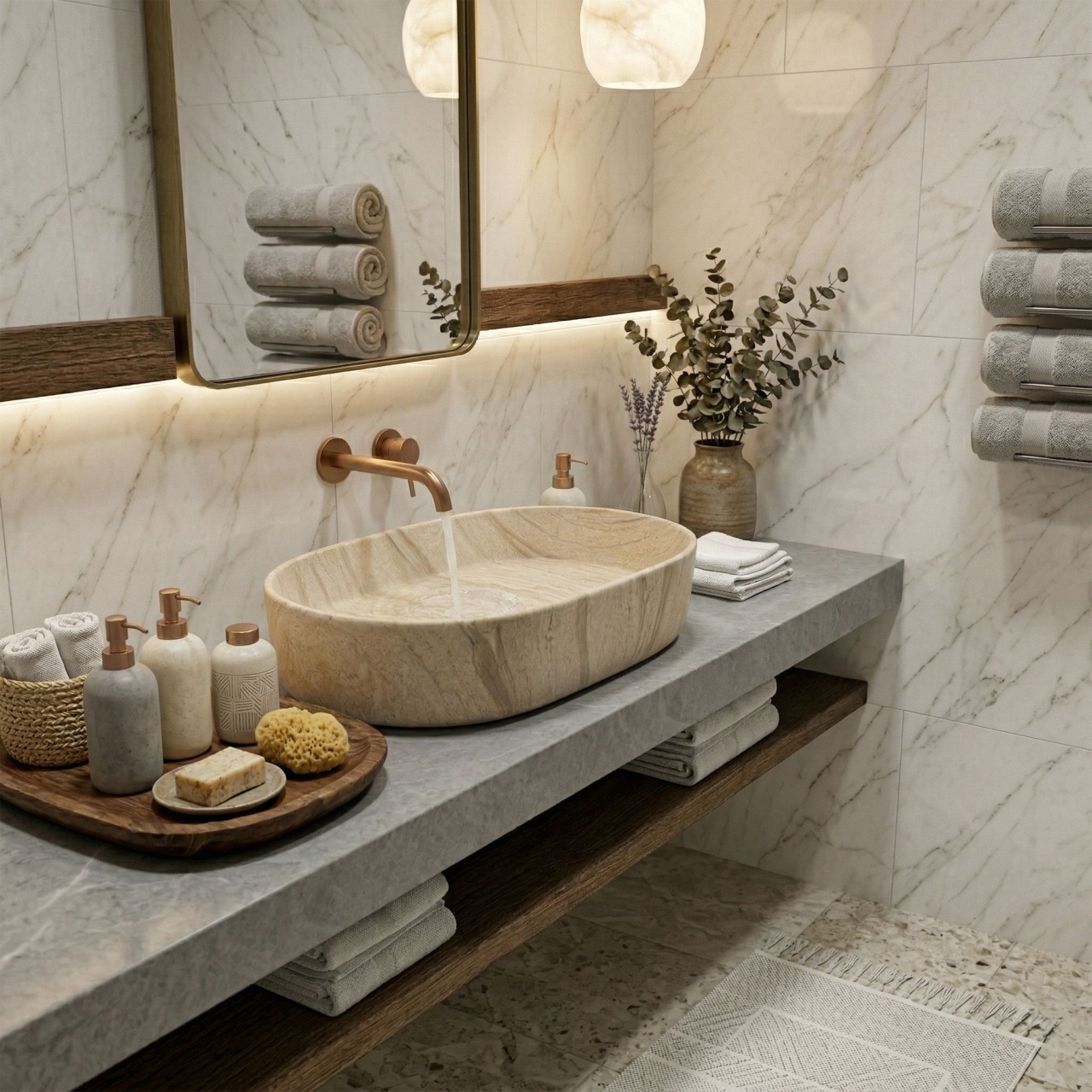 Alege un lavoar din piatră naturală - o alternativă originală pentru chivetele tradiționale albe ceramice. Modele potrivite oricărui stil, dimensiuni, pentru un plus de eleganță băii.