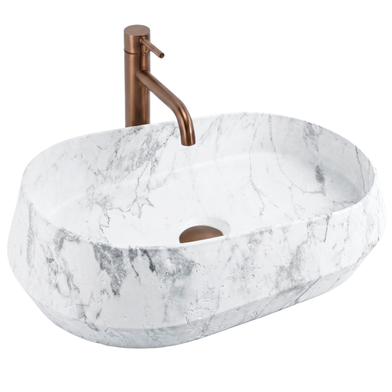 Lavoarul pe blat Zoe Dune este un model care atrage imediat privirea. În locul unei cuve clasice, perfect regulate, primești o formă inspirată din natură și piatră brută. Este o alegere excelentă dacă îți dorești un accent expresiv, dar nu exagerat, în baie.Piatra artificială (Artificial Stone) – lavoarul este realizat dintr-un compozit de înaltă calitate. Acest material se remarcă prin masivitate, durabilitate excepțională și rezistență la deteriorări mecanice. În plus, este plăcut la atingere și menține mai mult timp temperatura apei.Formă asimetrică – ceea ce diferențiază cel mai mult modelul Zoe Dune este forma sa neregulată. Una dintre laturile cuvei este vizibil mai înaltă decât cealaltă, oferindu-i un aspect dinamic și organic.Model de piatră naturală – suprafața are un finisaj mat cu nervuri gri-grafit bine definite. Textura mată accentuează efectul natural și este, totodată, foarte practică în utilizarea zilnică.Montaj pe blat – lavoarul este conceput pentru a fi montat direct pe blat sau pe mobilier. Acest tip de instalare evidențiază pe deplin forma sa neobișnuită și facilitează amenajarea spațiului din jur.Interior confortabil – în ciuda formei exterioare neregulate, interiorul cuvei este neted și bine profilat. Apa se scurge liber spre sifon, reducând stropirea în timpul spălării mâinilor.Lavoarul Zoe Dune este un accent natural puternic în amenajare. Linia sa asimetrică și structura de piatră se potrivesc perfect în băi moderne, minimaliste și în stil wabi-sabi. Metodă de montaj: De blat Material: Artificial Stone (piatră compozită) Culoare: Imitație piatră, Gri Finisaj: Mat Lungime: 590 Latime : 380 Inalime: 170 Adâncime: 110 Formă: Oval, Asimetric