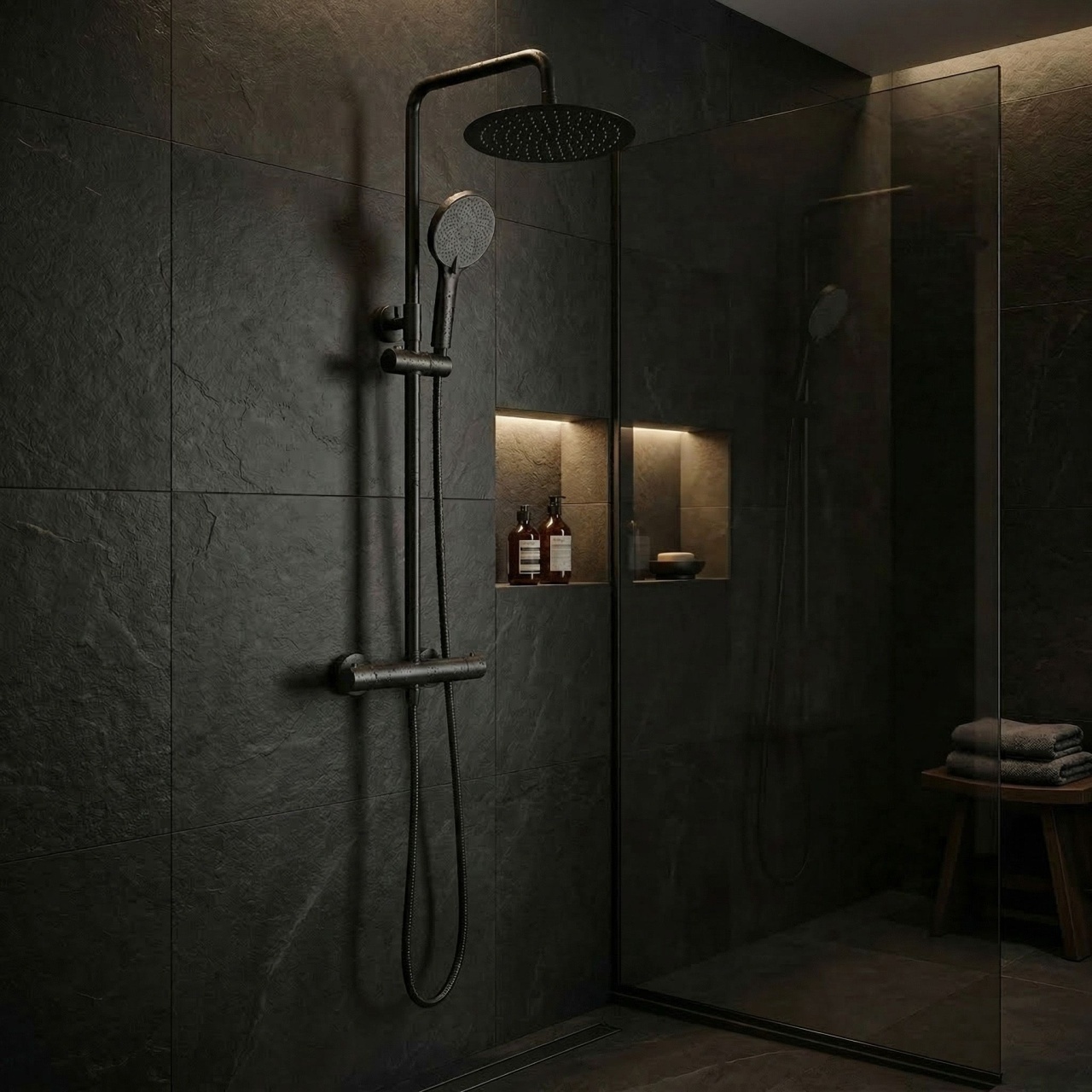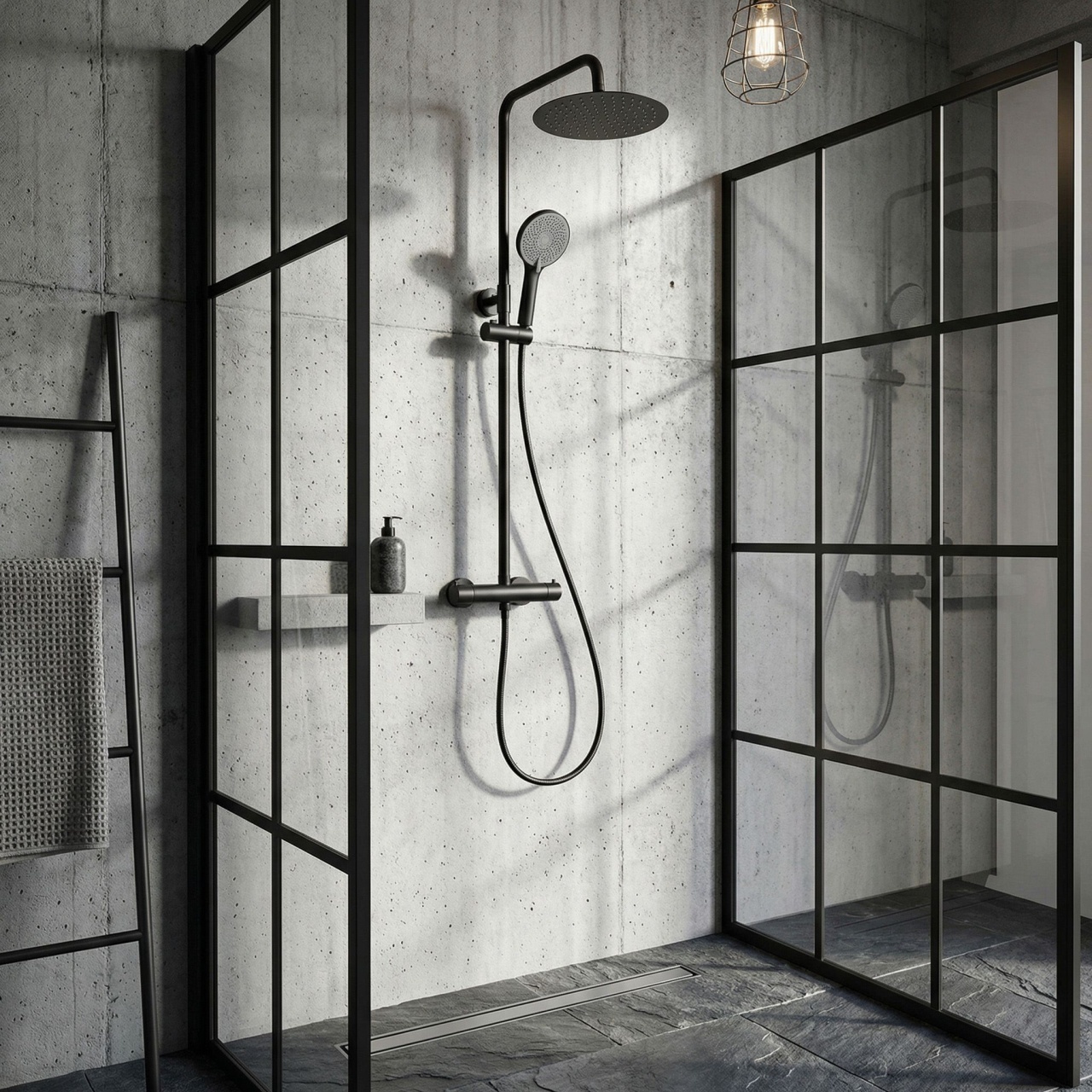 Set de duș fără pipă cu termostat Rea Lungo Black