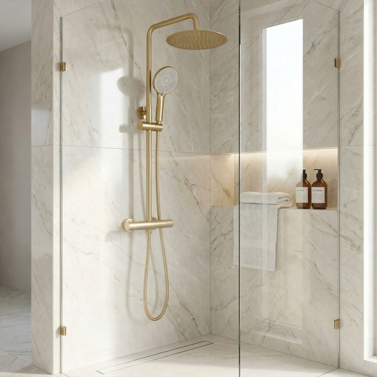 Set de duș fără pipă cu termostat Rea Lungo Gold Brush