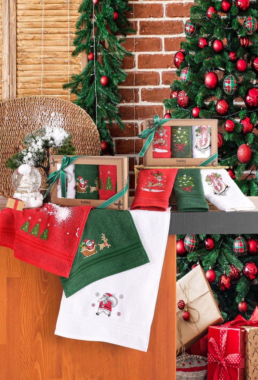 Set prosoape L'essentiel Maison Baby Reindeer Verde / Roșu / Alb