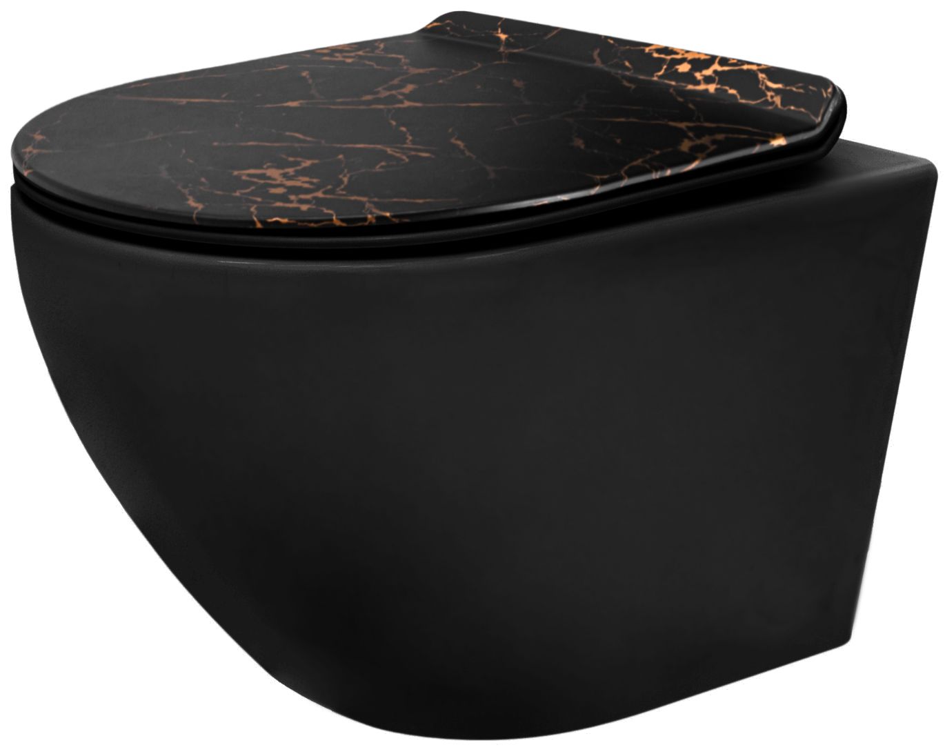 Vas WC suspendabil Rea Carlo Mini Rimless Slim negru Mat Marble
