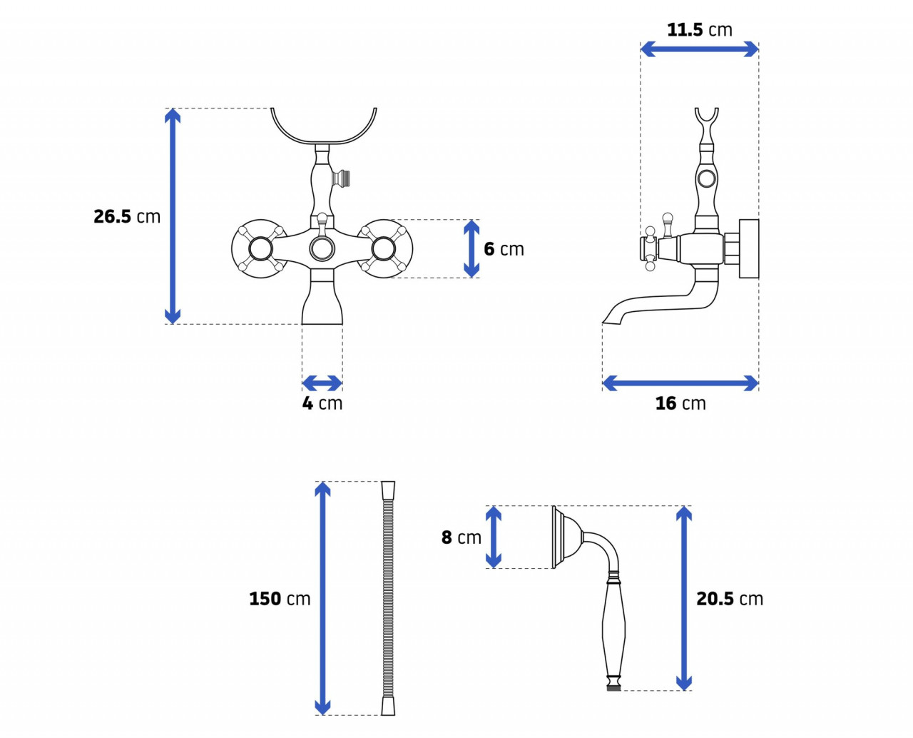 Bateria retro pentru cada Rea Retro Old în nuanță negru mat, cu un design inspirat din telefoanele clasice, aduce un farmec nostalgic băii tale. Finisajul elegant și sofisticat, combinat cu accentele de cupru, creează un efect vizual impresionant, perfect pentru un ambient elegant inspirat din anii '30. Bateria include un set de duș cu același stil, oferind un aspect unitar. Cu o înălțime de 16 cm, metodă de instalare pe perete și un cartuș ceramic, această baterie asigură atât estetică, cât și funcționalitate. Conexiunea are un diametru de 3/8 inch, iar materialul din care este fabricată este alamă, garantând durabilitate și calitate.