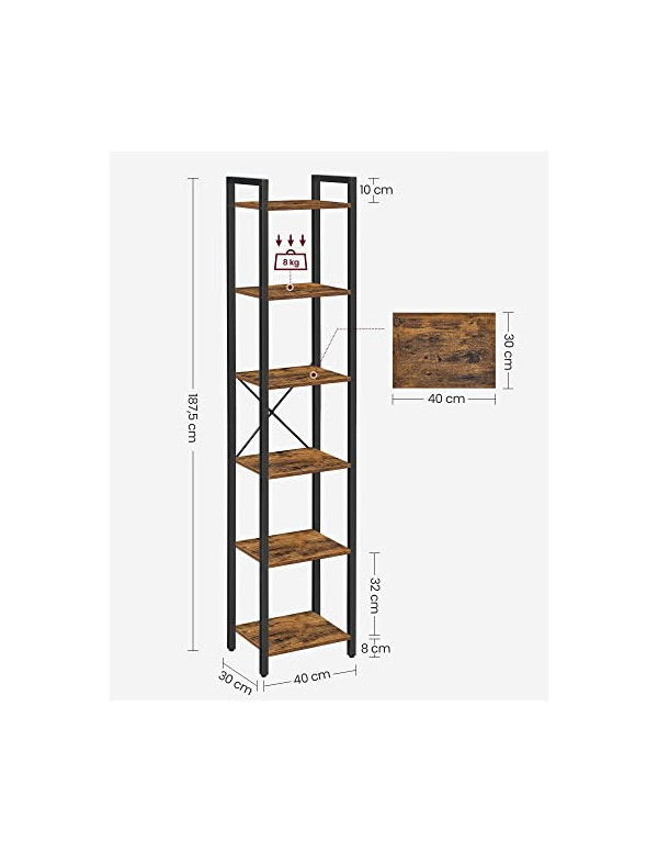 Biblioteca cu 6 rafturi Vasagle 30 x 40 x 187.5 cm LLS101B01 Maro Rustic