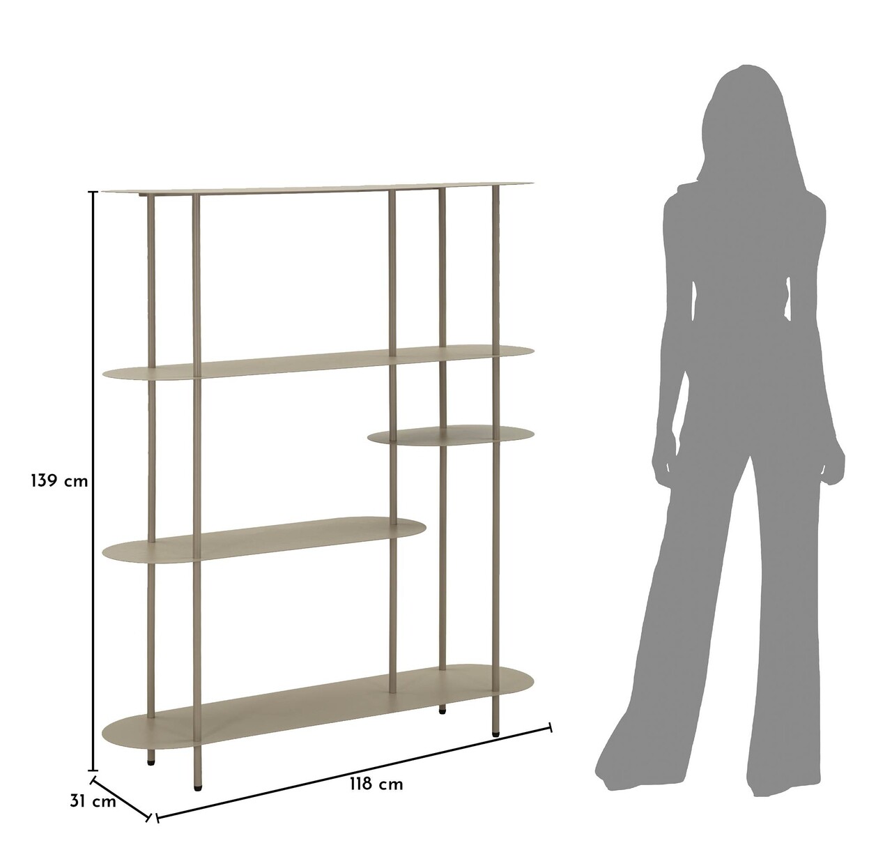 Trei rafturi elegante sustinute de o structura usoara. Biblioteca Saturn Dove transmite echilibru vizual si functionalitate, integrandu-se natural in spatiile contemporane.