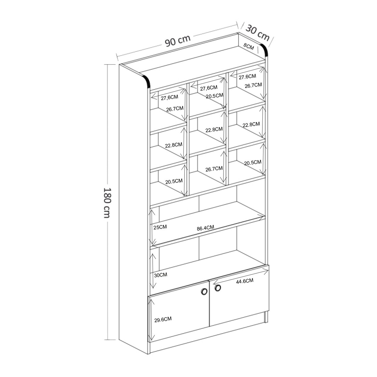 Biblioteca Tokyo - Alb este realizată din 100% PAL laminat, având o grosime de 30 mm pentru o durabilitate crescută. Cu dimensiuni generoase de 90 cm lățime, 180 cm înălțime și 30 cm adâncime, această bibliotecă oferă numeroase rafturi pentru a-ți organiza cărțile și obiectele decorative. Designul său modern permite fixarea pe perete, maximizând astfel spațiul din livingul tău. Produsul este livrat într-un singur pachet, facilitând montajul. Alege Biblioteca Tokyo pentru un plus de stil și funcționalitate în casa ta!