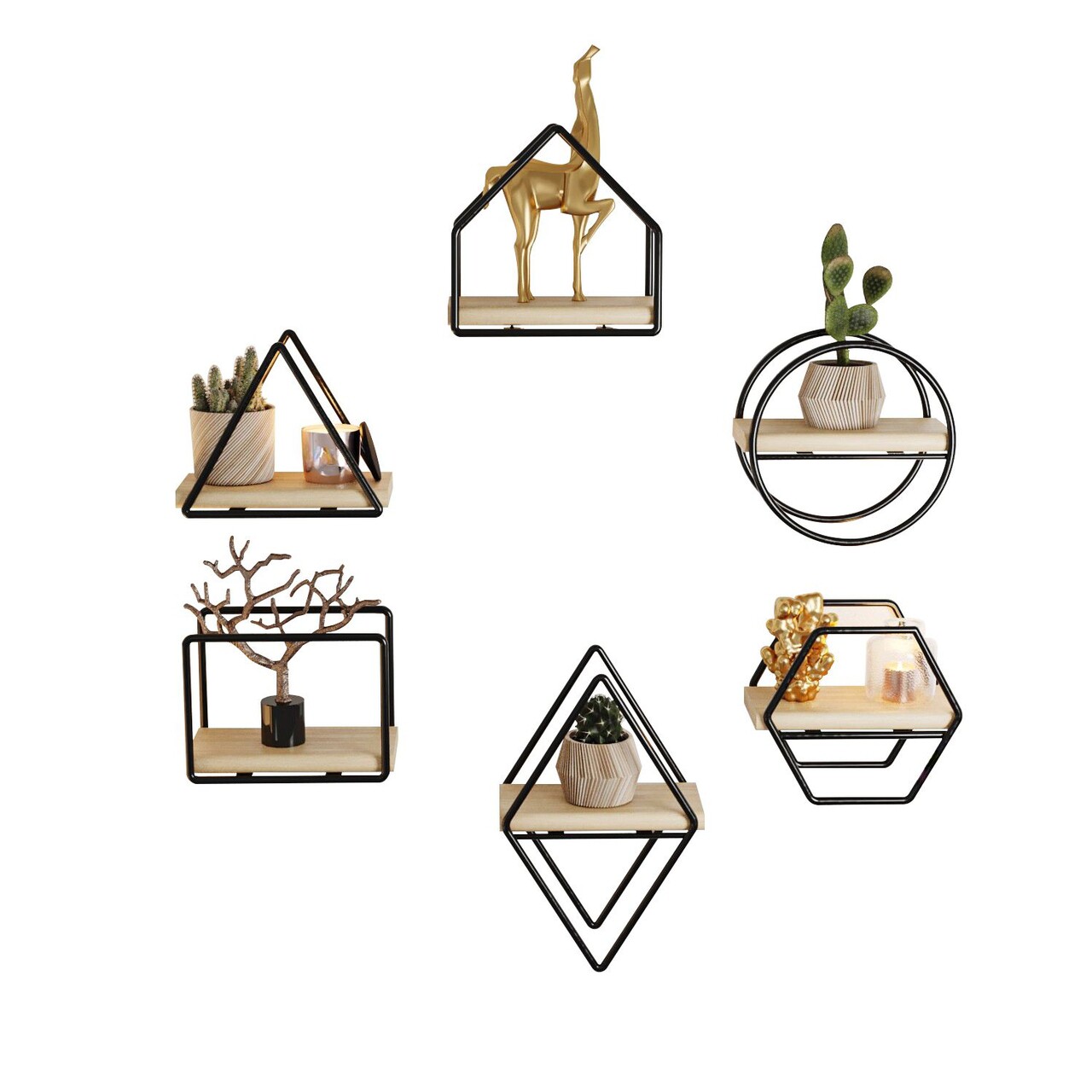 Raft de perete Hanah Home Minyatür Raflar 6'lı Set Aur/Negru