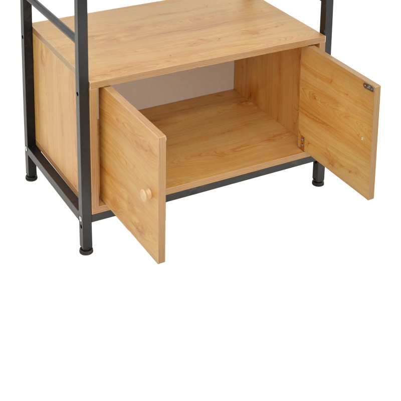 Raftul de podea Kuili Pako World aduce un strop de eleganță și funcționalitate în orice încăpere. Cu dimensiuni de 60x36x121 cm, acest mobilier modern dispune de trei rafturi spațioase și un cabinet închis, ideal pentru depozitarea electrocasnicelor mici și a accesoriilor de bucătărie. Fabricat din metal de 20 mm și MDF de 12 mm, raftul este durabil și rezistent la umiditate, având un finisaj elegant în nuanța de stejar și negru. Livrat demontat, cu instrucțiuni clare, este ușor de montat și întreținut. Transformă-ți spațiul cu stil!