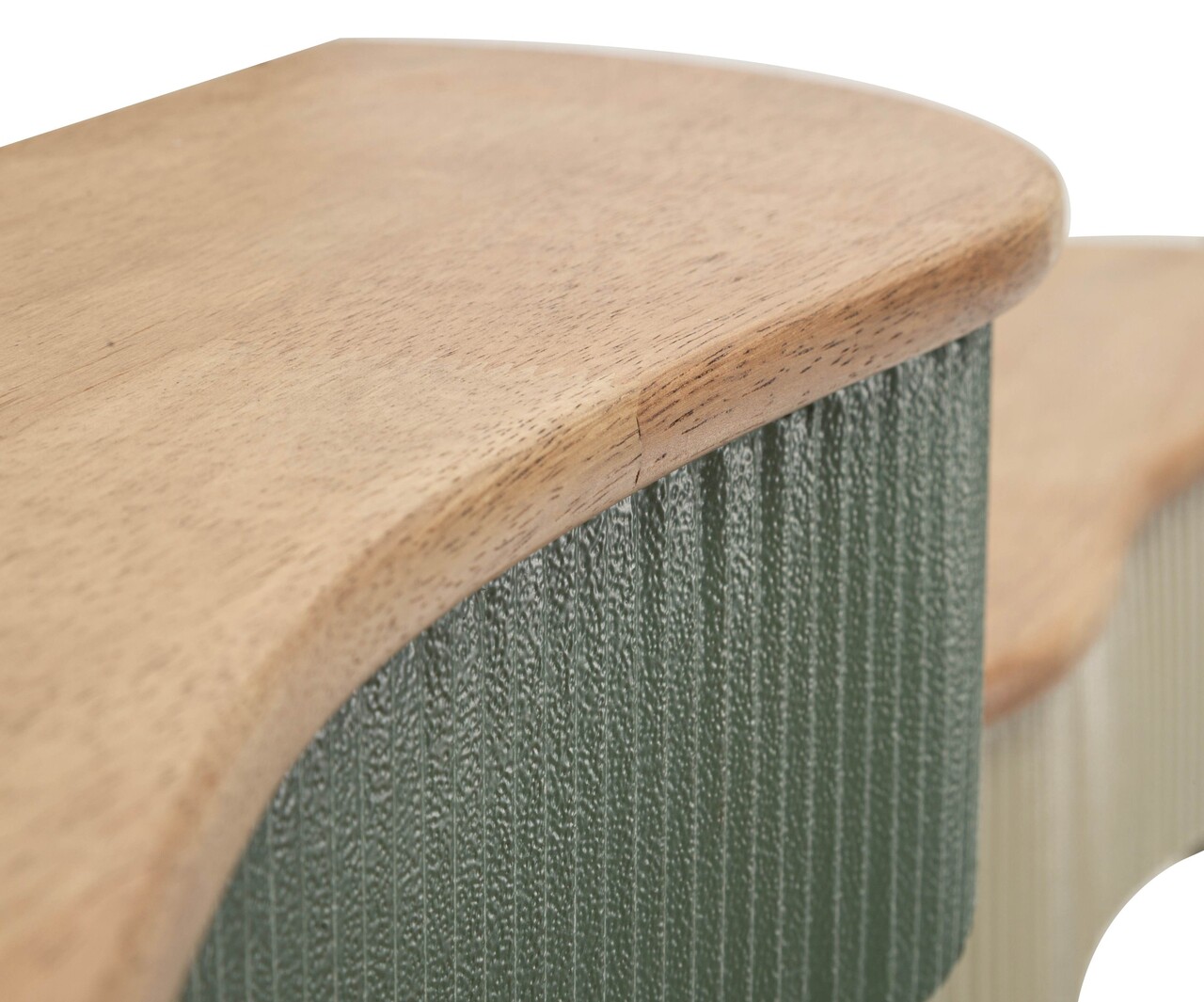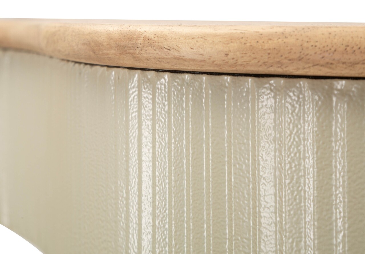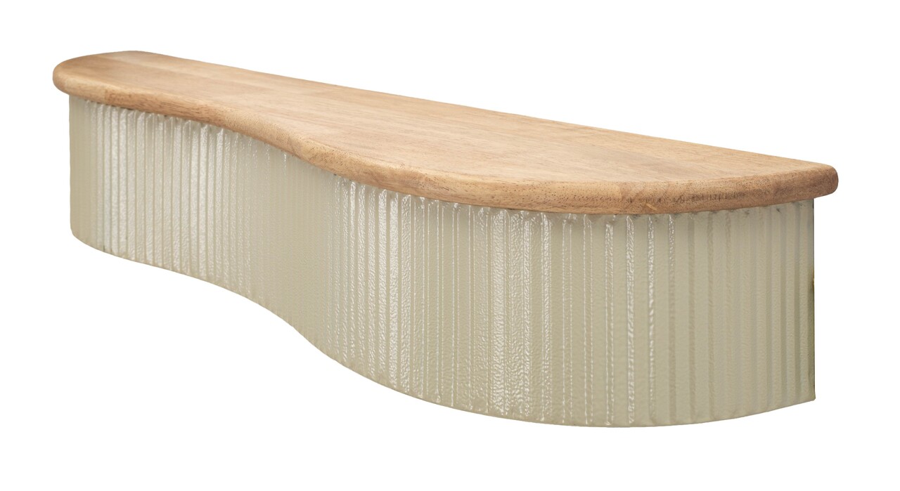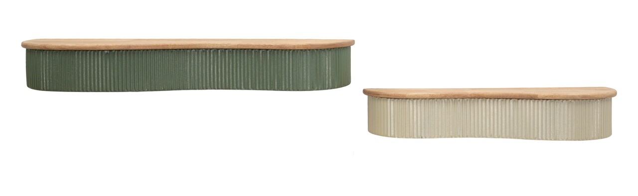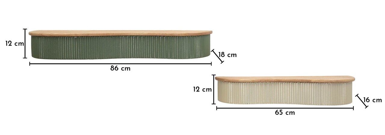 Un cuplu de etajere cu forma fluida si contemporana. Lucratura verticala nervurata si blatul cu efect de lemn creeaza un contrast elegant si natural, perfect pentru holuri sau livinguri.Setul include:1 raft de perete cu dimensiunile 86x18x12 cm;1 raft de perete cu dimensiunile 65x16x12 cm.Compozitie material: lemn de arbore de cauciuc si metal.