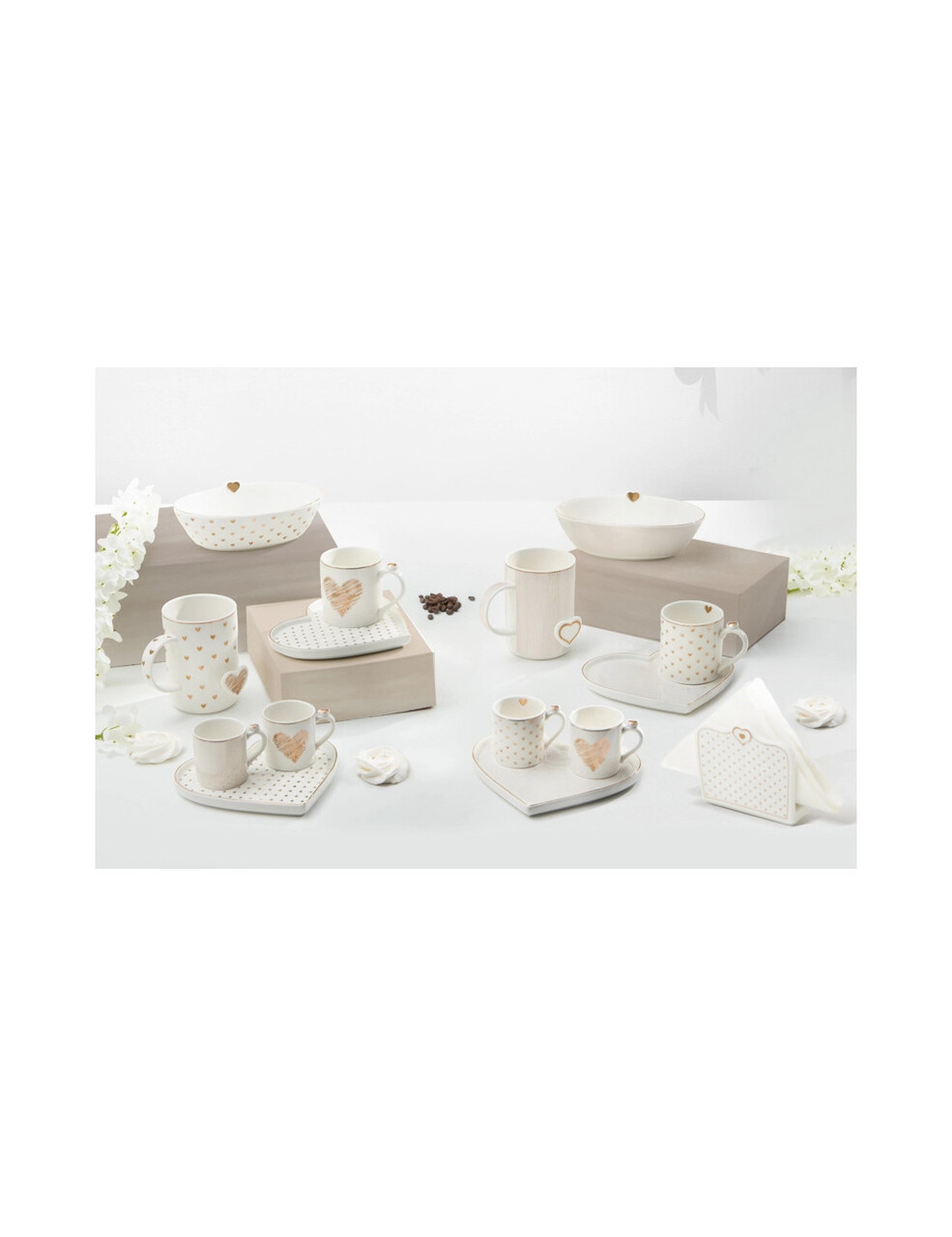 O pauza de cafea cu... iubirea mea! Impartaseste momentele de relaxare cu cei care te fac sa te simti bine: dragostea, prietenia, afectiunea si tandretea sunt sugerate prin inimioare delicate si motive geometrice, puse in valoare de eleganta portelanului. O colectie romantica si incantatoare, imbogatita cu accente aurii si o atmosfera poetica plina de stare de bine.MentiuniEste compatibil cu masina de spalat vase.Nu este compatibil cu cuptorul cu microunde.