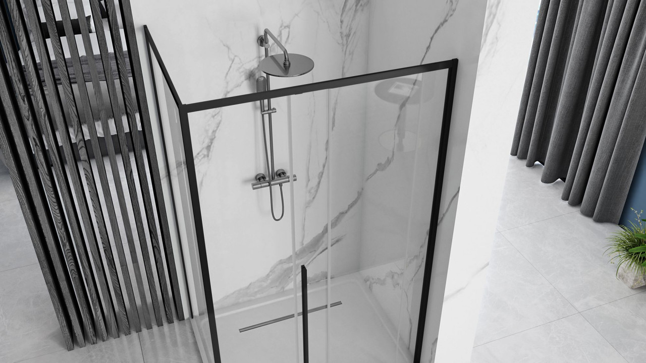 Cabina de duș patrata Rea Solar 90x90 negru mat îmbină un design modern cu funcționalitatea, fiind fabricată din sticlă securizată de 6 mm și profil din aluminiu cu finisaj negru mat. Cu dimensiuni de 900x900xH1950 mm, aceasta dispune de uși glisante și o lățime a intrării de 395 mm, facilitând accesul comod. Sistemul Easy Clean asigură o întreținere ușoară, iar ajustarea pe profile permite o instalare simplă, fie pe cadita de duș, fie direct pe pardoseală. Detaliile atent concepute garantează durabilitate și un spațiu de baie elegant.