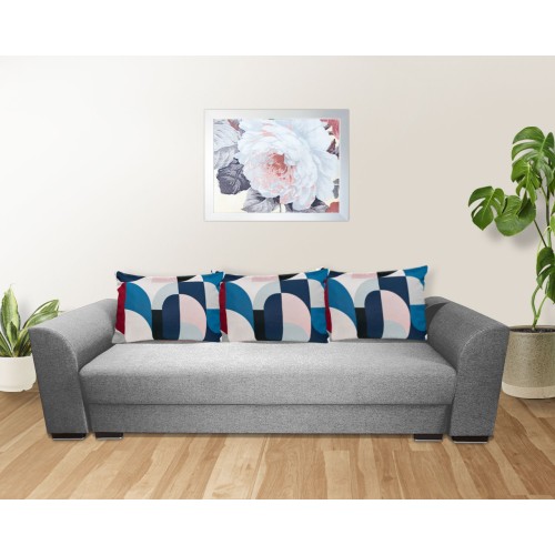Canapeaua Lindo N85 este alegerea perfectă pentru un stil de viață activ, oferind confort și versatilitate. Aceasta este extensibilă, transformându-se cu ușurință într-un pat generos de 140 x 190 cm, ideal pentru nopți odihnitoare. Construită cu saltele cu plasa de arcuri și burete de densitate mare, asigură un suport excelent. Lada de depozitare practică permite organizarea lenjeriei și a obiectelor rare, iar cele trei perne pufoase adaugă un plus de confort și culoare. Montajul este simplu, iar peretarul integrat protejează peretele și sporește confortul.
