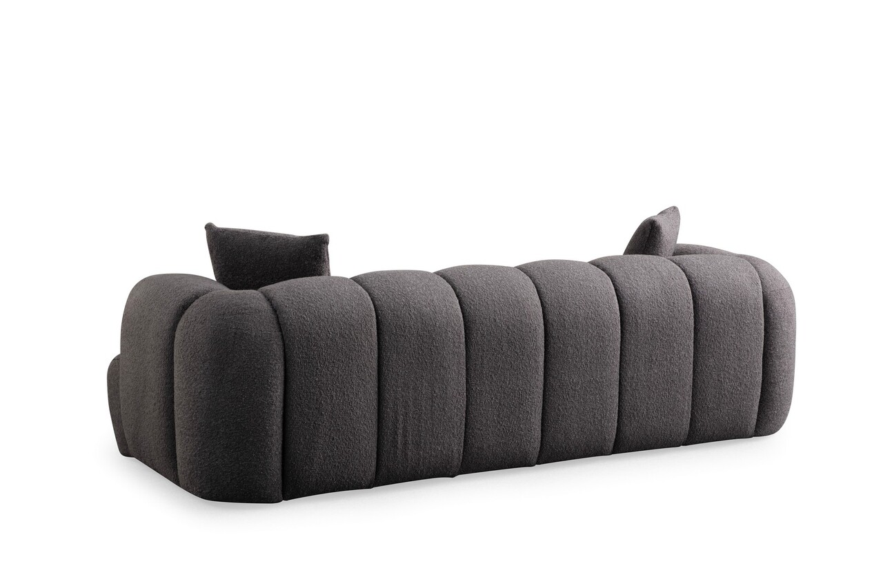 Canapea 3 locuriTesatura: PoliesterLungime: 255 cm Latime: 115 cm Inaltime: 77 cmSpuma: 28 DNS spumă moale gri / 24 DNS Feather60% spumă tăiată / 40% spumă de silicon pentru spatePerne: Nu sunt incluse pernePicioare: Picioare din plastic negru (3 cm)Inaltime sezut: 43 cmAdancime sezut : 65 cmLățimea cotierei: 35 cmInaltime cotiera: 77 cm