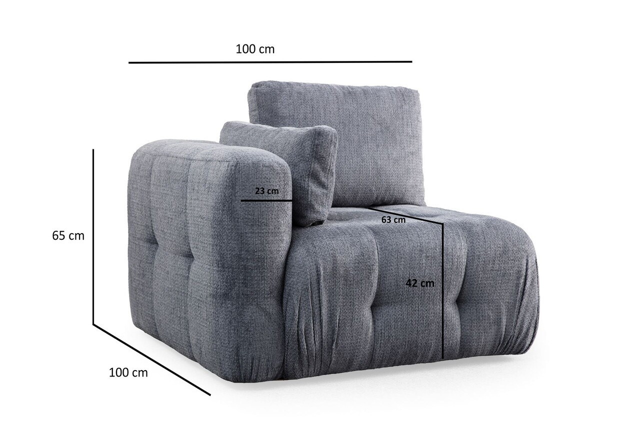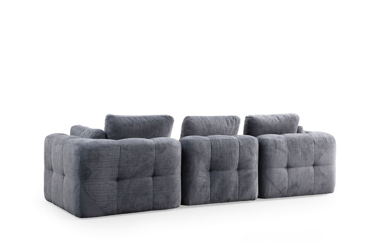 Canapea 3 locuriTesatura: PoliesterLungime: 290 cm Latime: 100 cm Inaltime: 65 cmSpuma: 28 DNS spumă moale gri / 24 DNS Feather60% spumă tăiată / 40% spumă de silicon pentru spateBack Pillow: 50 x 50 cm (3 piese)Side Pillow: 68 x 29 cm (2 piese)Pernele sunt incluse.Picioare: Picioare mici din plastic negru (3 cm)Inaltime sezut: 42 cm Adancime sezut: 81 cmSeat Depth width Pillows: 63 cmLatime spate: 65 cmLățimea cotierei: 23 cmInaltime cotiera: 65 cm