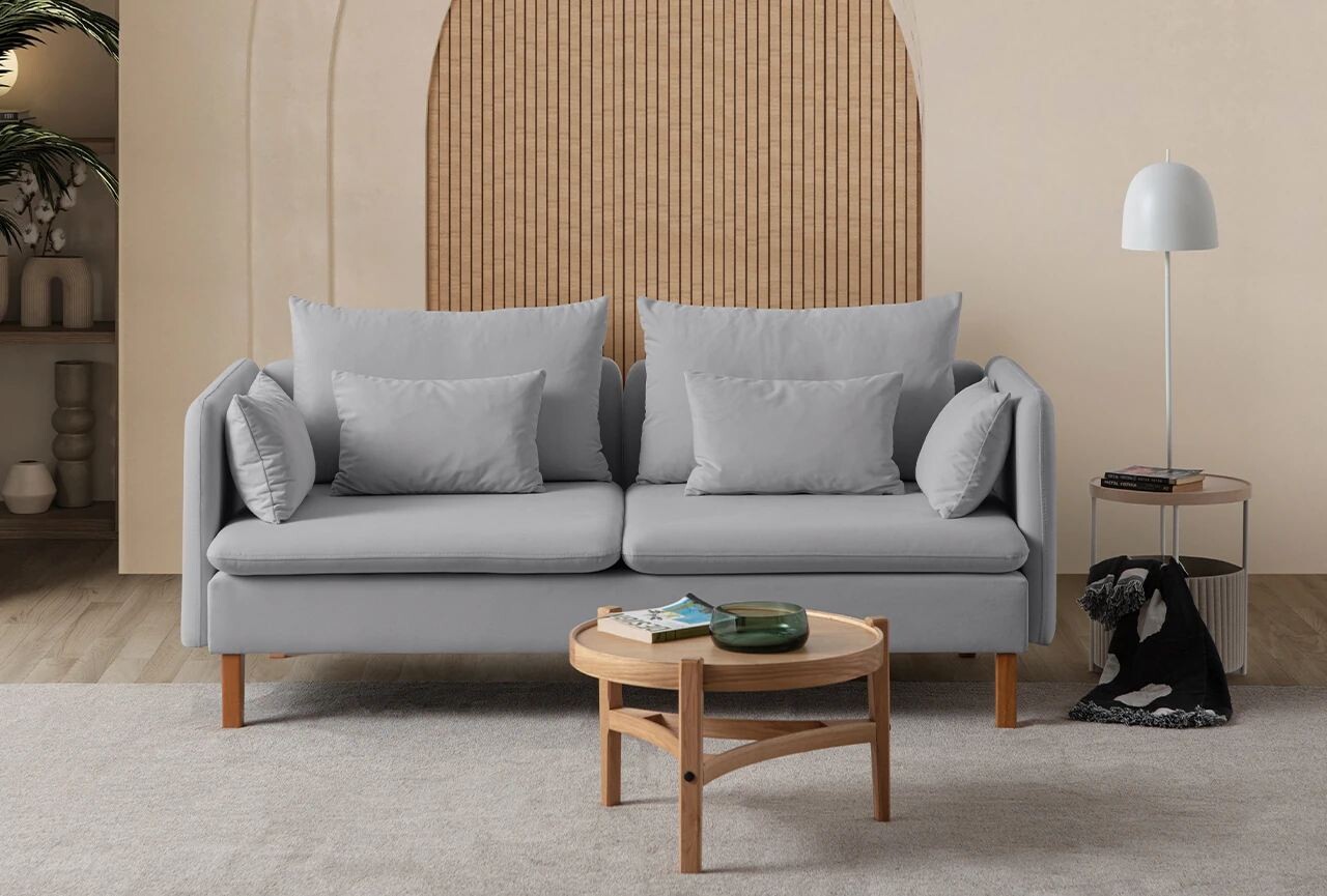 Canapea 3 locuriTesatura: Poliester (Velvet Texure)Picioare din lemnEasy-CleanPerne portabile30 DNS Medium Hard Sponge for Sitting / Silicone & Scrap Sponge for BackInaltime sezut: 20 cm6 Cushions are Included.Latime: 195 cm Inaltime: 75 cm Adancime: 100 cmInaltime sezut: 45 cmAdancime sezut: 95 cmInaltime cotiera: 70 cmInaltimea piciorului: 17 cmGreutate maxima suportata: 240 kg