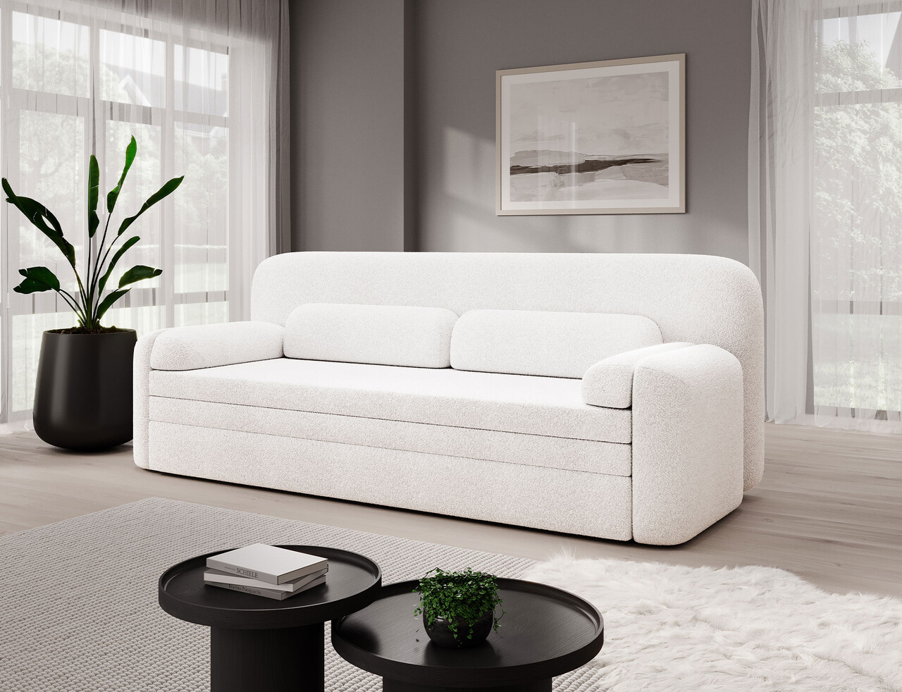 Canapea extensibila 2 locuri ELTAP Elioss 236x89x87 cm lemn/poliester alb