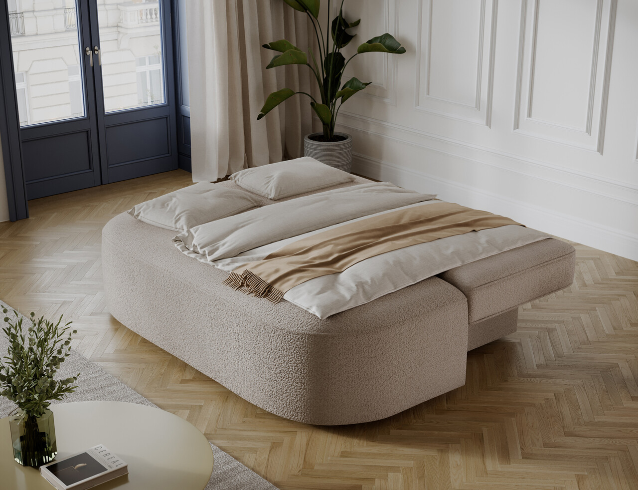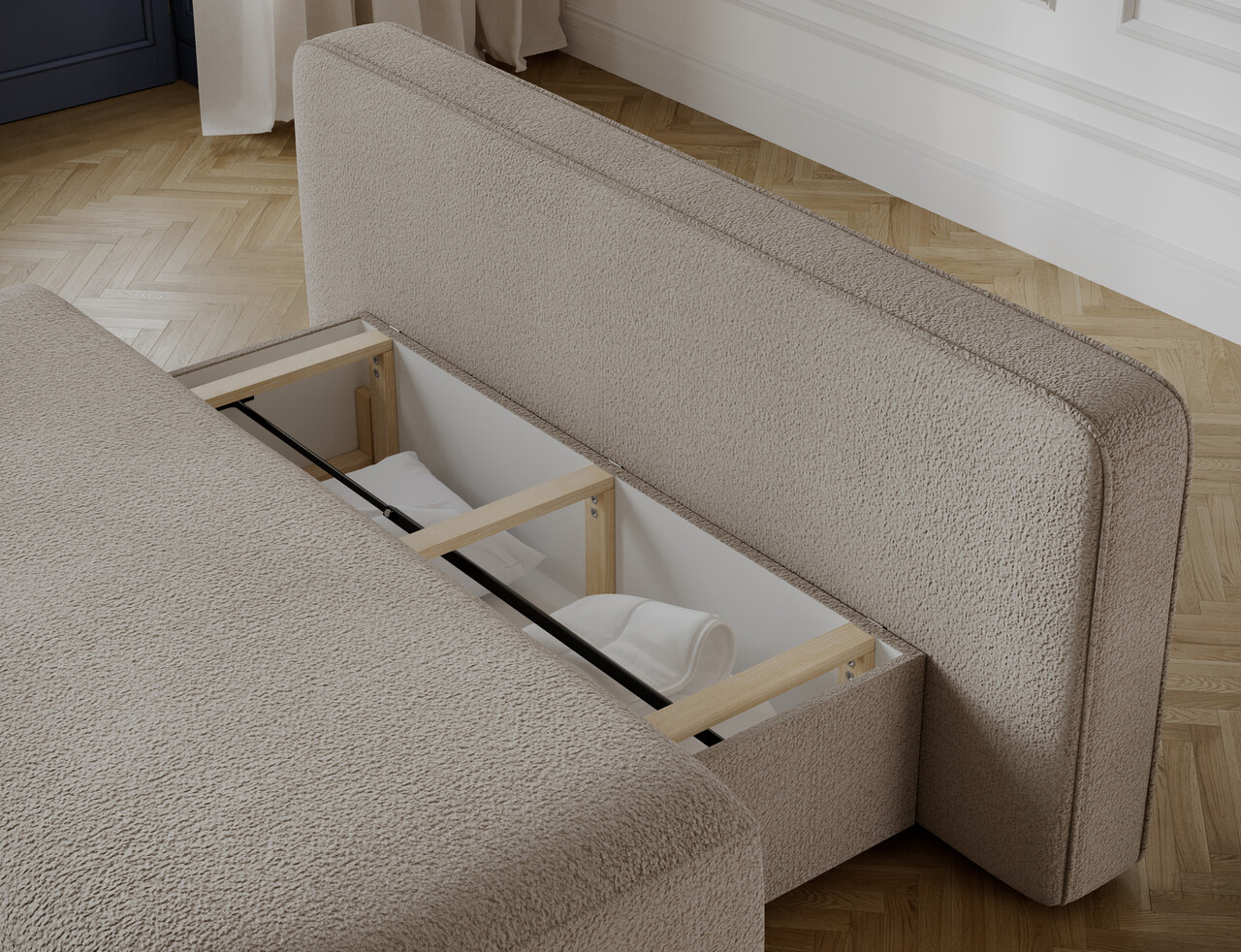 Canapeaua extensibilă 2 locuri ELTAP Lilana combină eleganța cu funcționalitatea, având dimensiunile de 193x96x93 cm. Tapitată cu 100% poliester de înaltă calitate, canapeaua oferă un confort ridicat datorită arcurilor ondulate de tip B și spumei poliuretanice T2540. Dispune de un spațiu practic de depozitare pentru lenjerie și poate fi amplasată liber în încăpere, datorită spatelui complet tapitat. Picioarele negre din plastic adaugă un aer modern, iar suprafața de dormit de 150x193 cm o face ideală pentru oaspeți. Pernele sunt detașabile și canapeaua suportă o greutate maximă de 210 kg. Asamblarea este necesară.