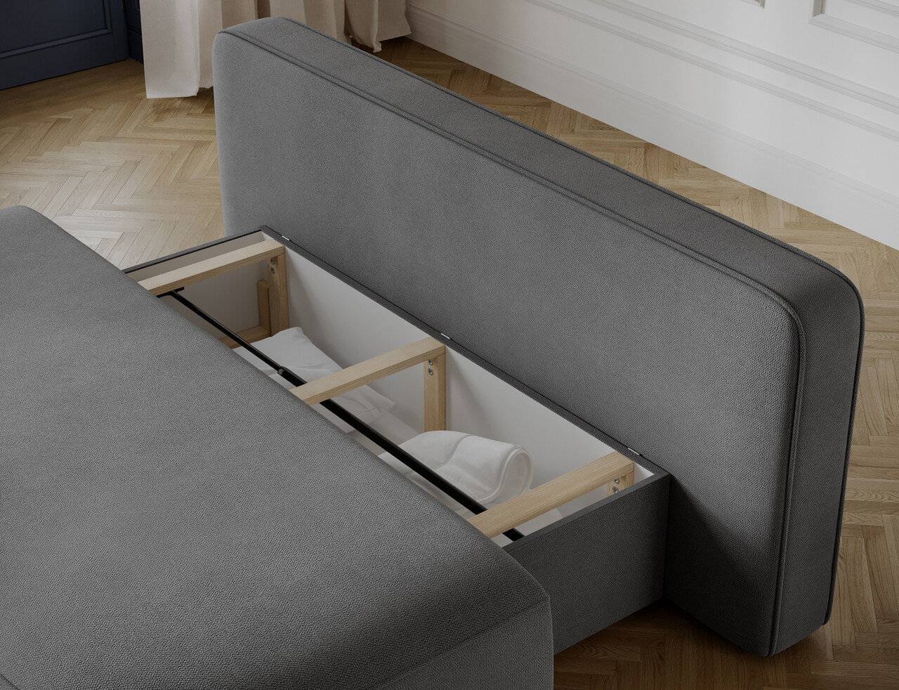 Canapeaua extensibilă 2 locuri ELTAP Lilana, cu dimensiunile de 193x96x93 cm, este o alegere modernă și elegantă pentru orice interior. Fabricată din lemn de pin și tapițată cu 100% poliester, aceasta oferă un confort deosebit datorită arcurilor ondulate de tip B și spumei poliuretanice T2540. Canapeaua dispune de un mecanism de extensie tip DL, transformându-se ușor într-un pat cu suprafața de dormit de 150x193 cm. Cu un spațiu generos de depozitare pentru lenjerie și perne detașabile, Lilana combină funcționalitatea cu stilul. Picioarele negre din plastic subliniază designul modern, iar greutatea maximă suportată este de 210 kg. Asamblarea este necesară.