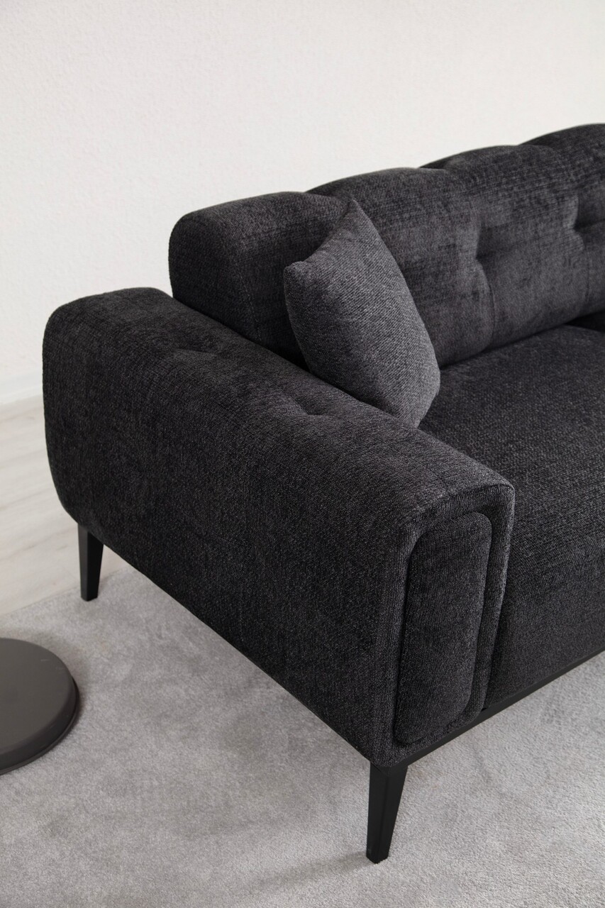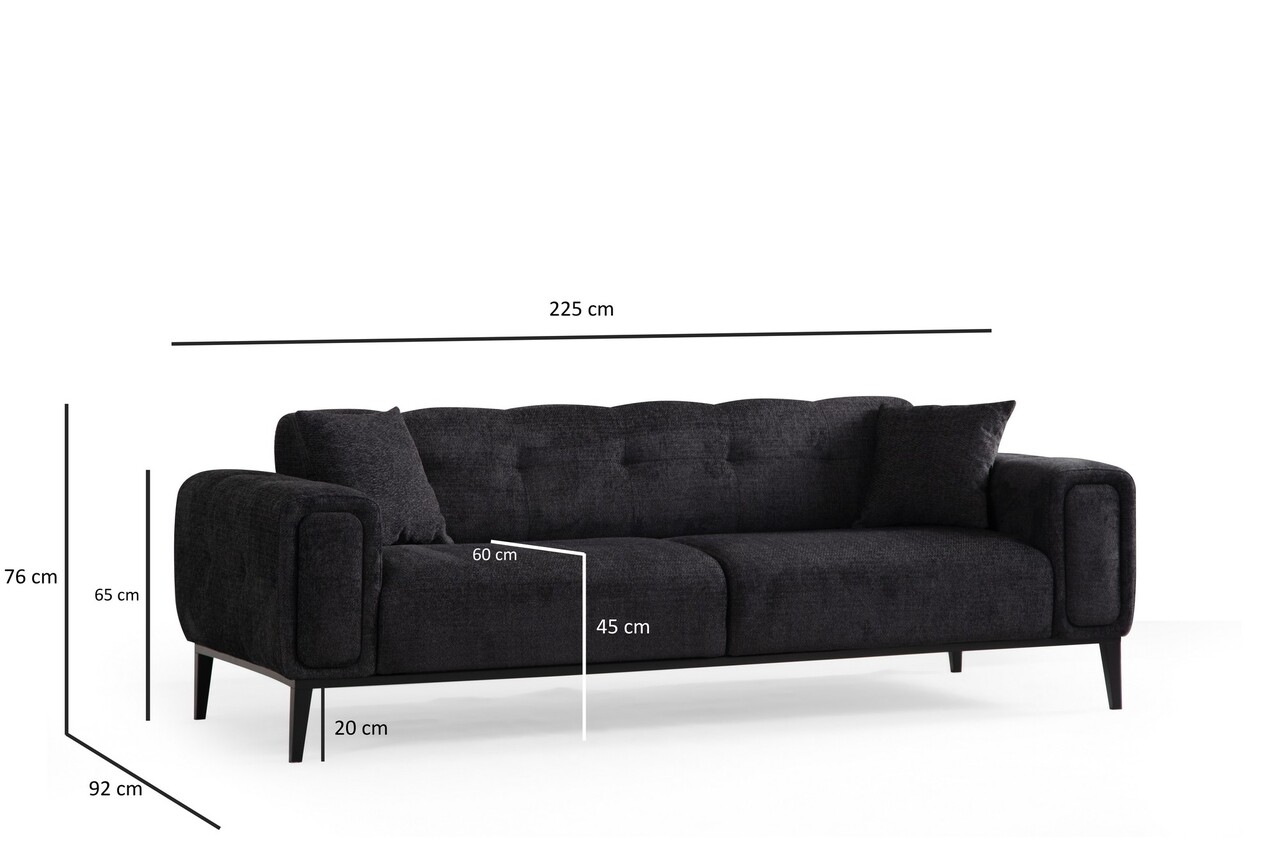 Canapea extensibila 3 locuriTesatura: PoliesterLungime: 225 cm Latime: 92 cm Inaltime: 76 cmInaltime sezut: 45 cmAdancime sezut: 60 cmInaltimea piciorului: 20 cmSpuma: 28 DNS spumă moale gri / 24 DNS Feather60% spumă tăiată / 40% spumă de silicon pentru spateMecanism: Mecanism de spătar rotativ pentru canapea extensibilăPernă fixă pentru șezut/pernă pentru spateTesatura care se curata uscatPicioare: Bază și picioare din lemn negru