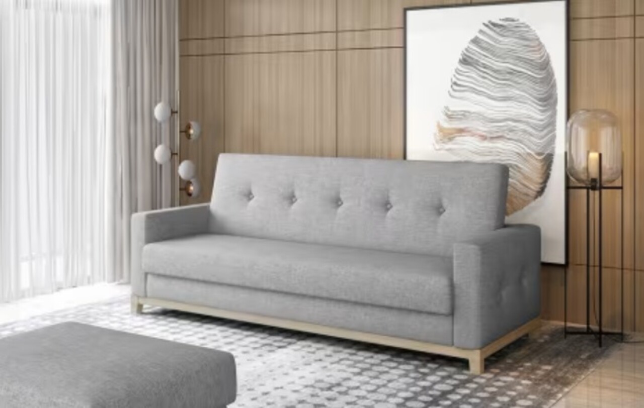 Canapea extensibila 3 locuri ELTAP Sel-10-BW Selene 216x104x93 cm lemn/poliester gri deschis/natur