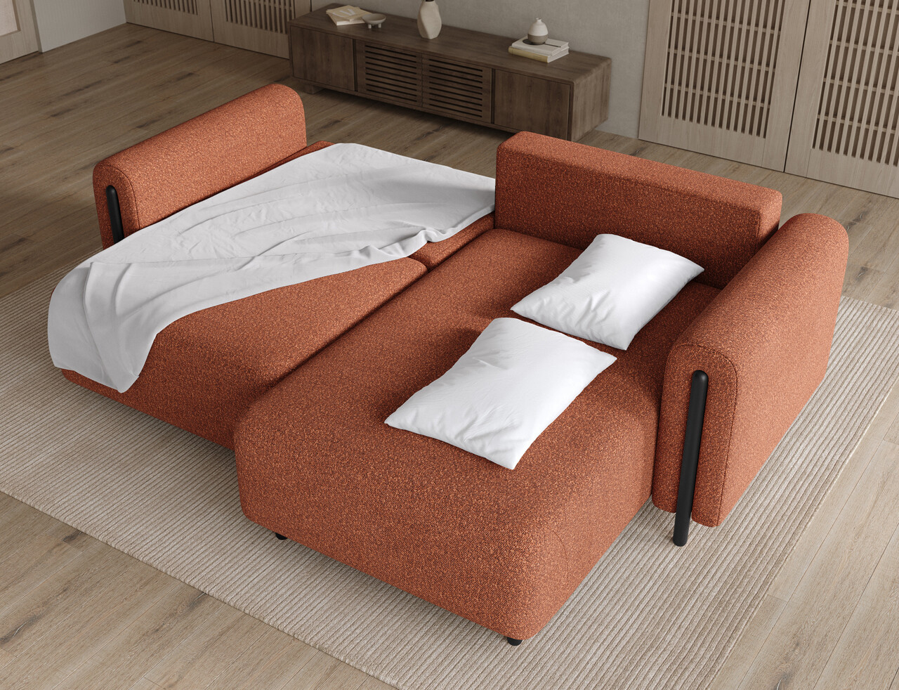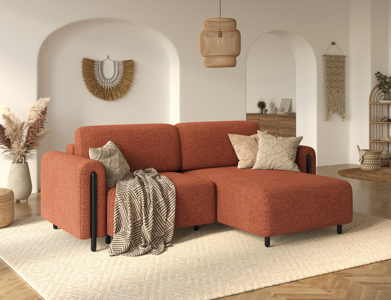 Coltar extensibil dreapta 3 locuri ELTAP RT-BL-30JAF Acossta 244x154x95 cm lemn/poliester caramiziu/negru