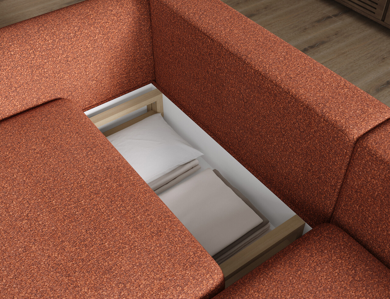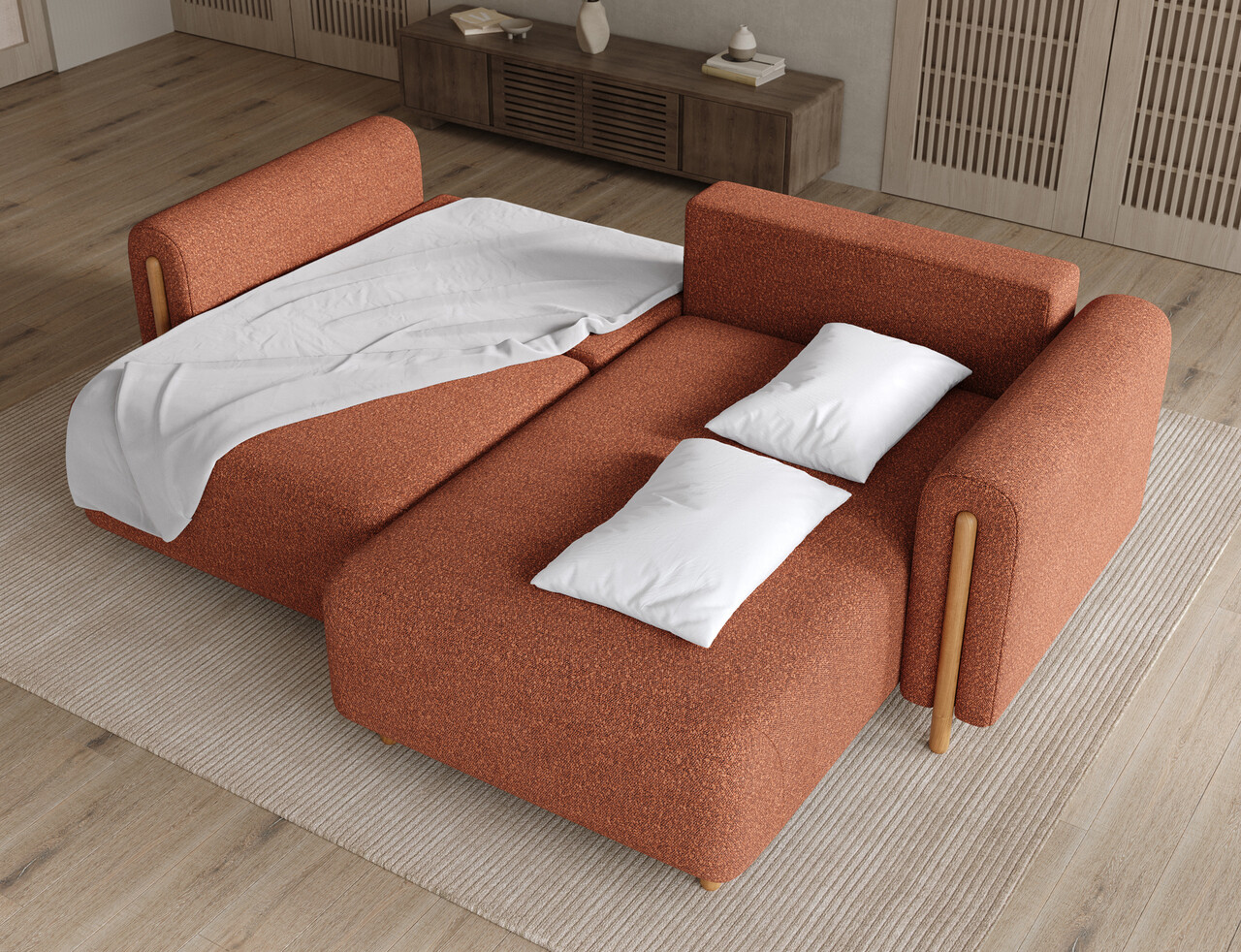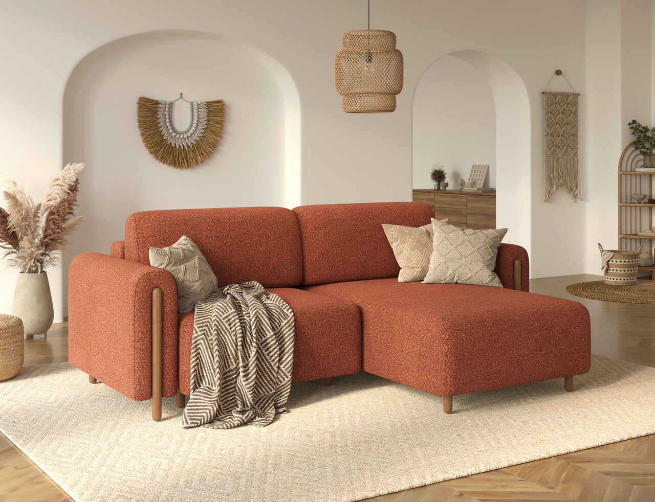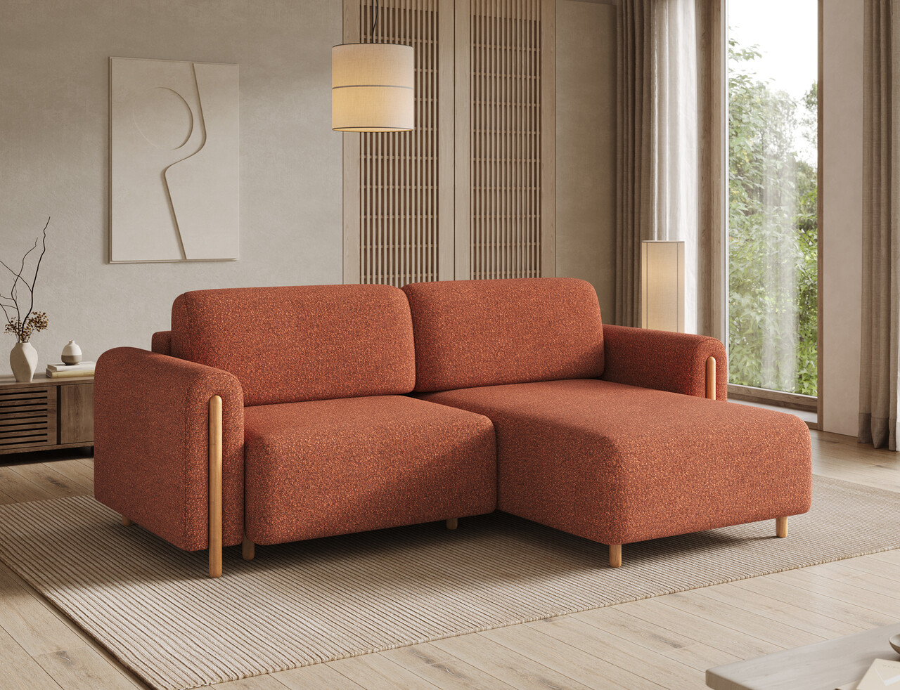 Coltar extensibil dreapta 3 locuri ELTAP RT-O-30JAF Acossta 244x154x95 cm lemn/poliester caramiziu/natur